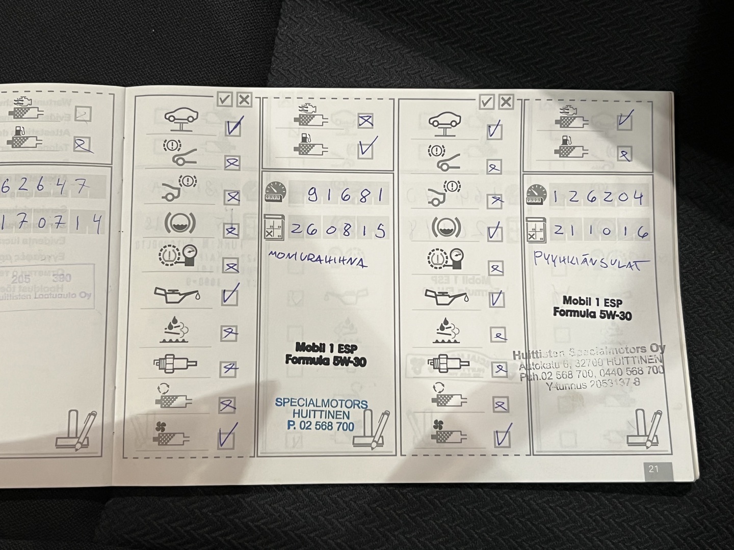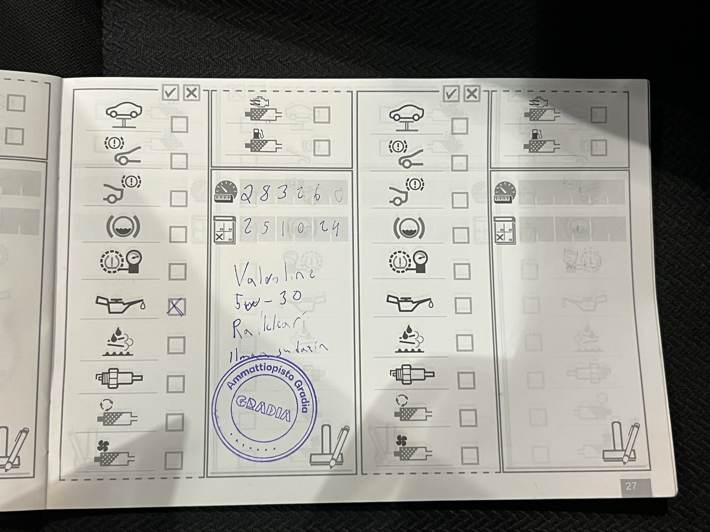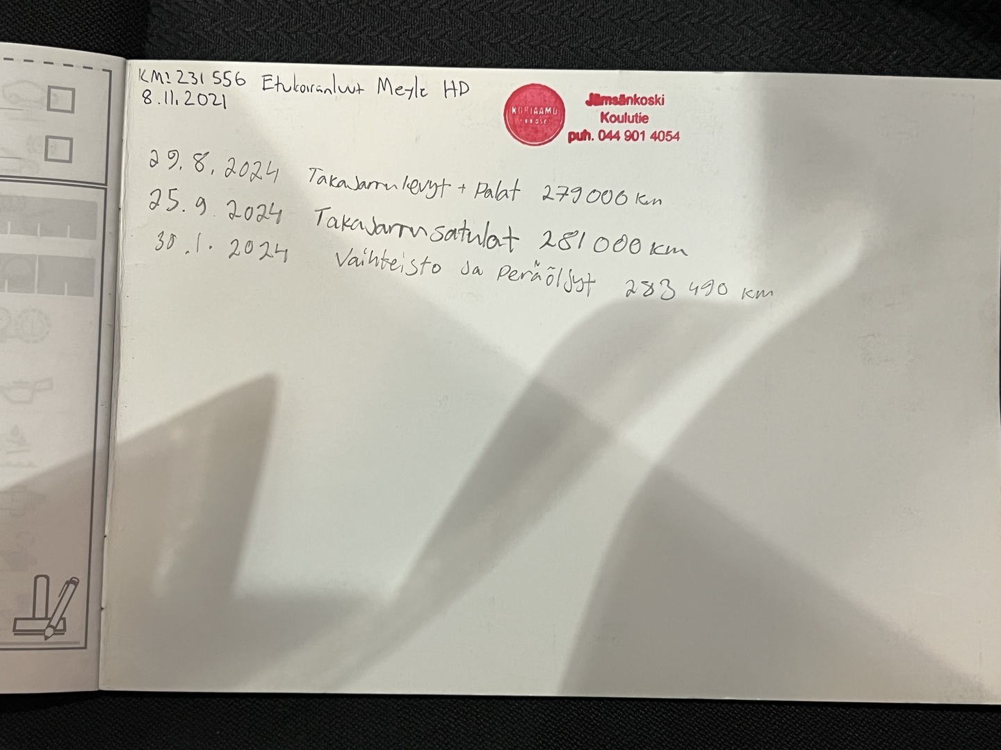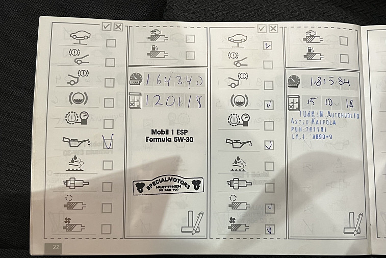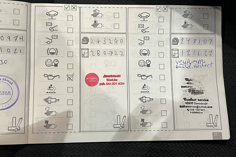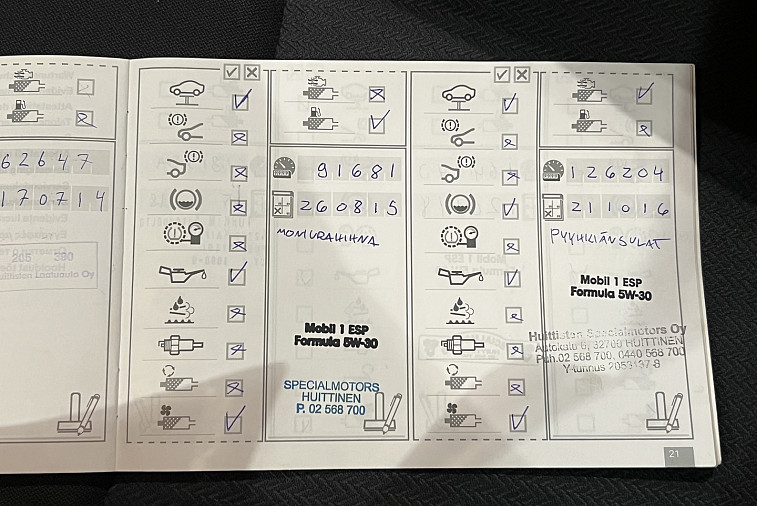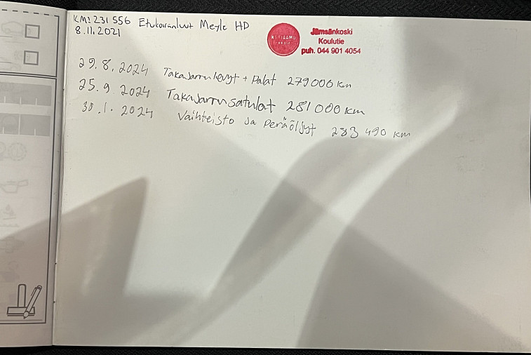 - Viimeisin huolto tehty 283 260km kohdalla, 25.10.2024