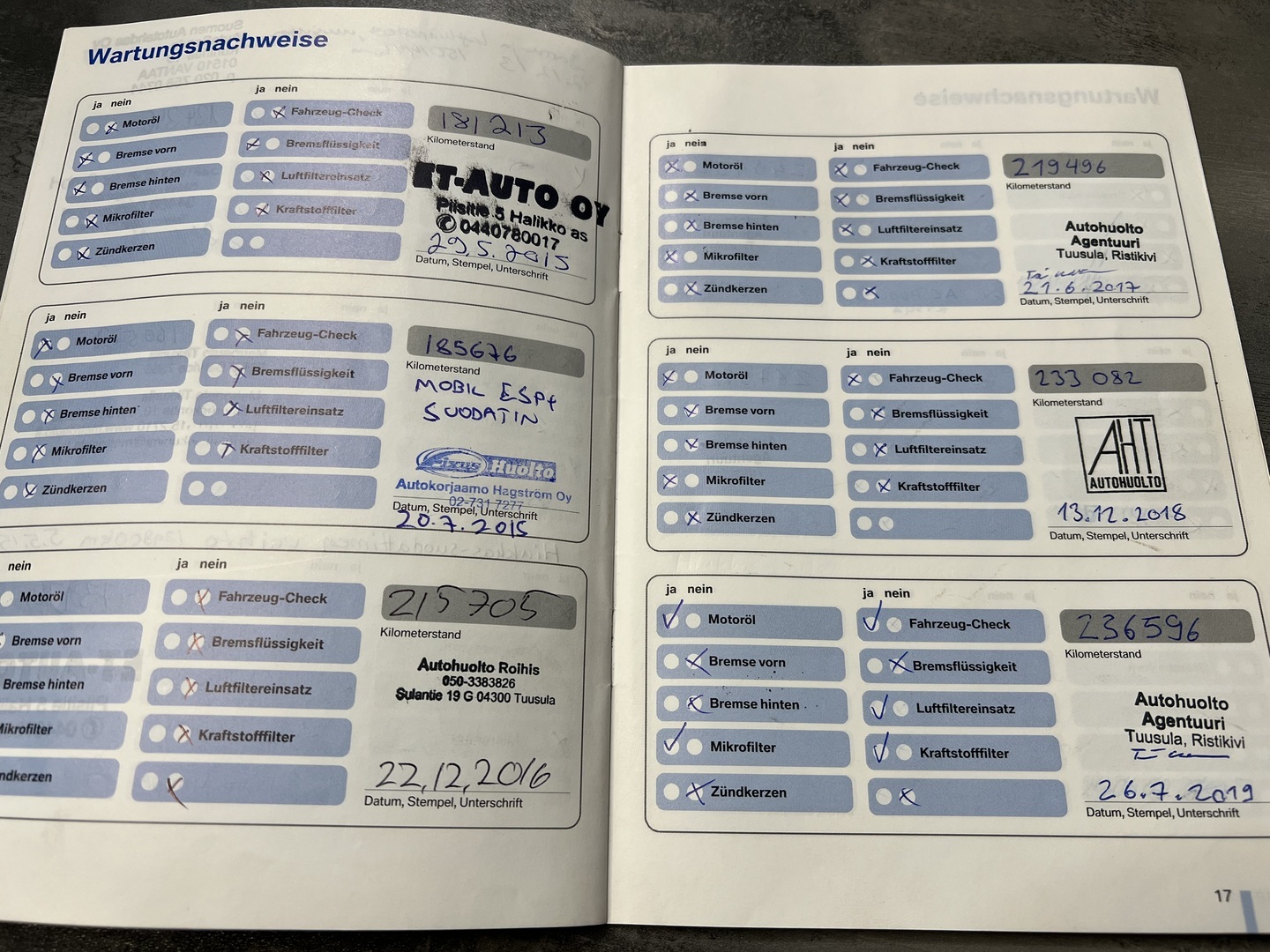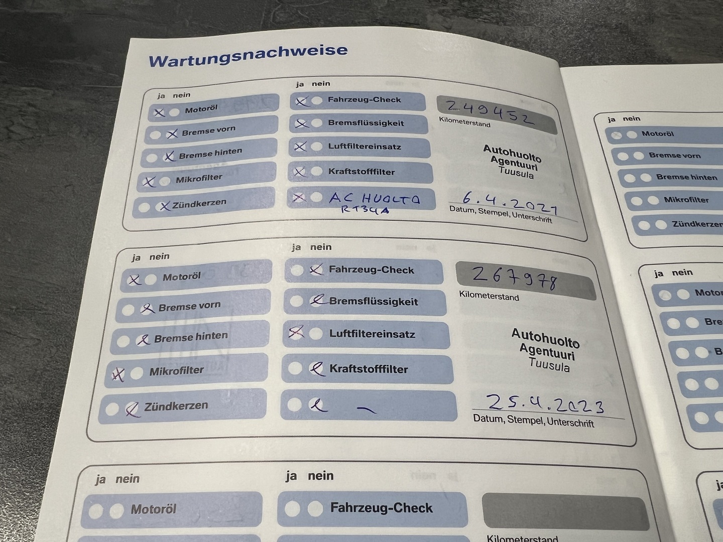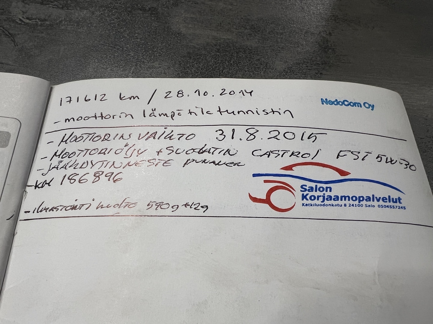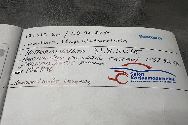 - Viimeisin huolto tehty 267 978km kohdalla