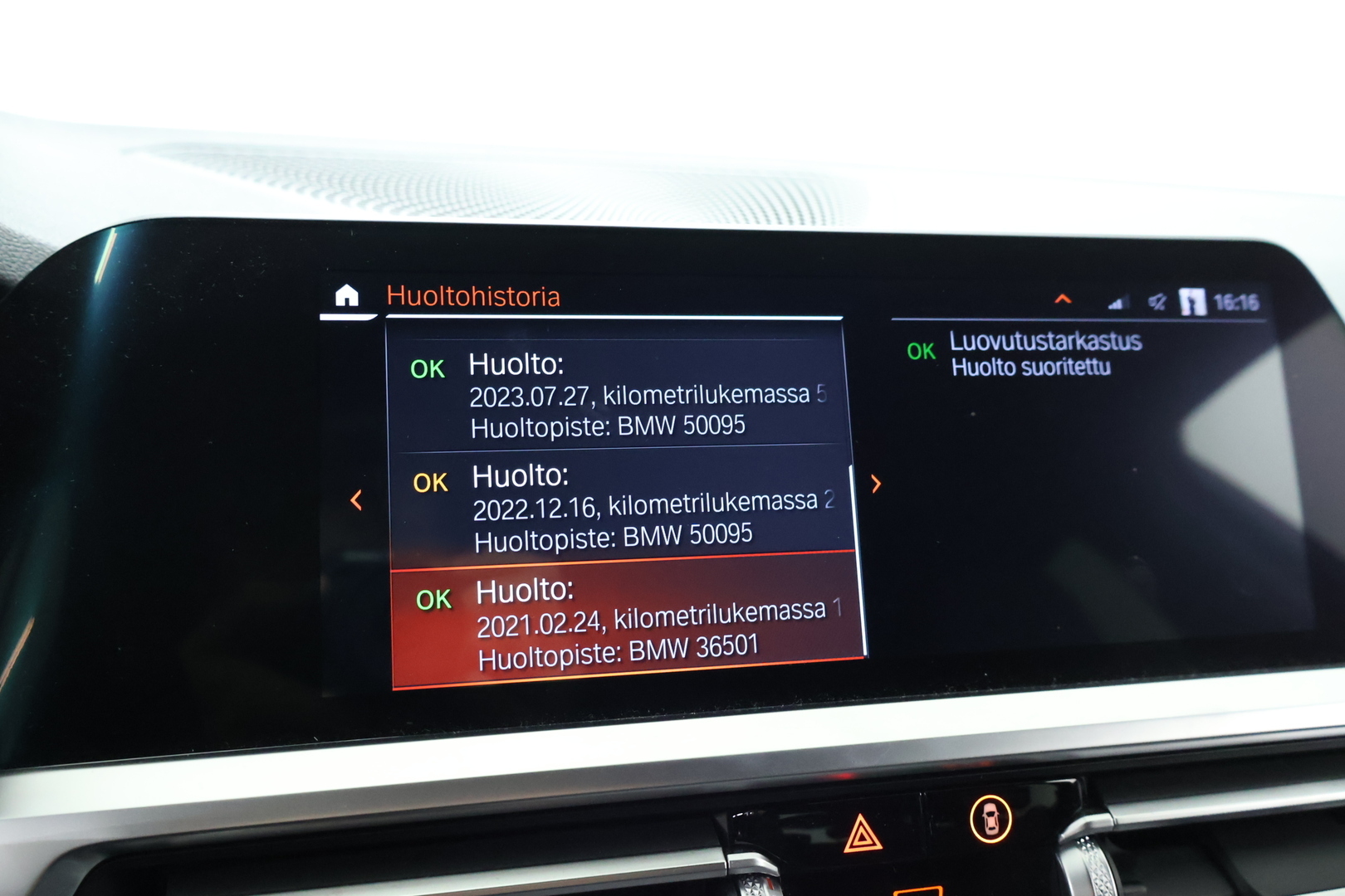 - Viimeisin huolto tehty 130 237km kohdalla, 11 / 2025