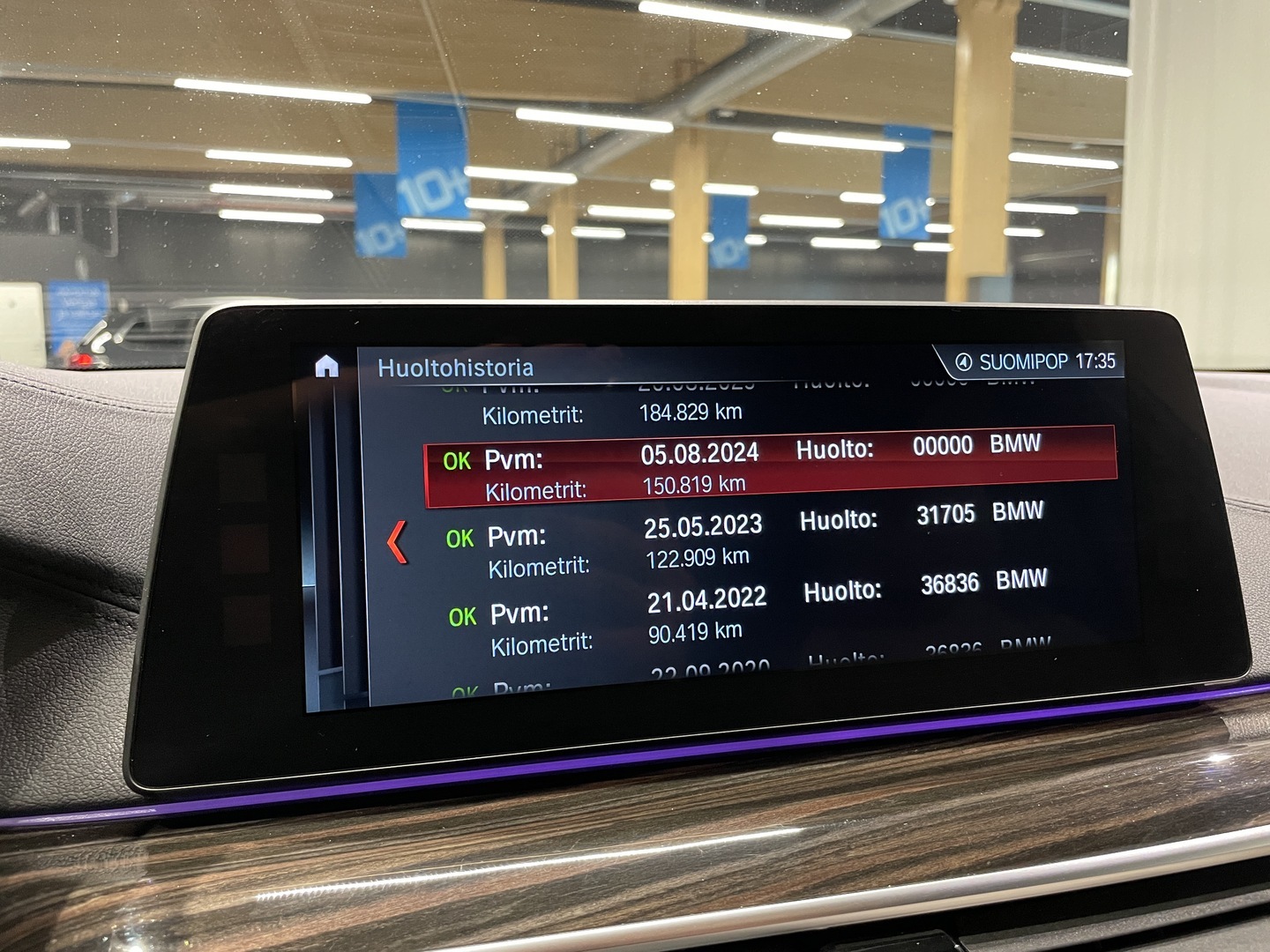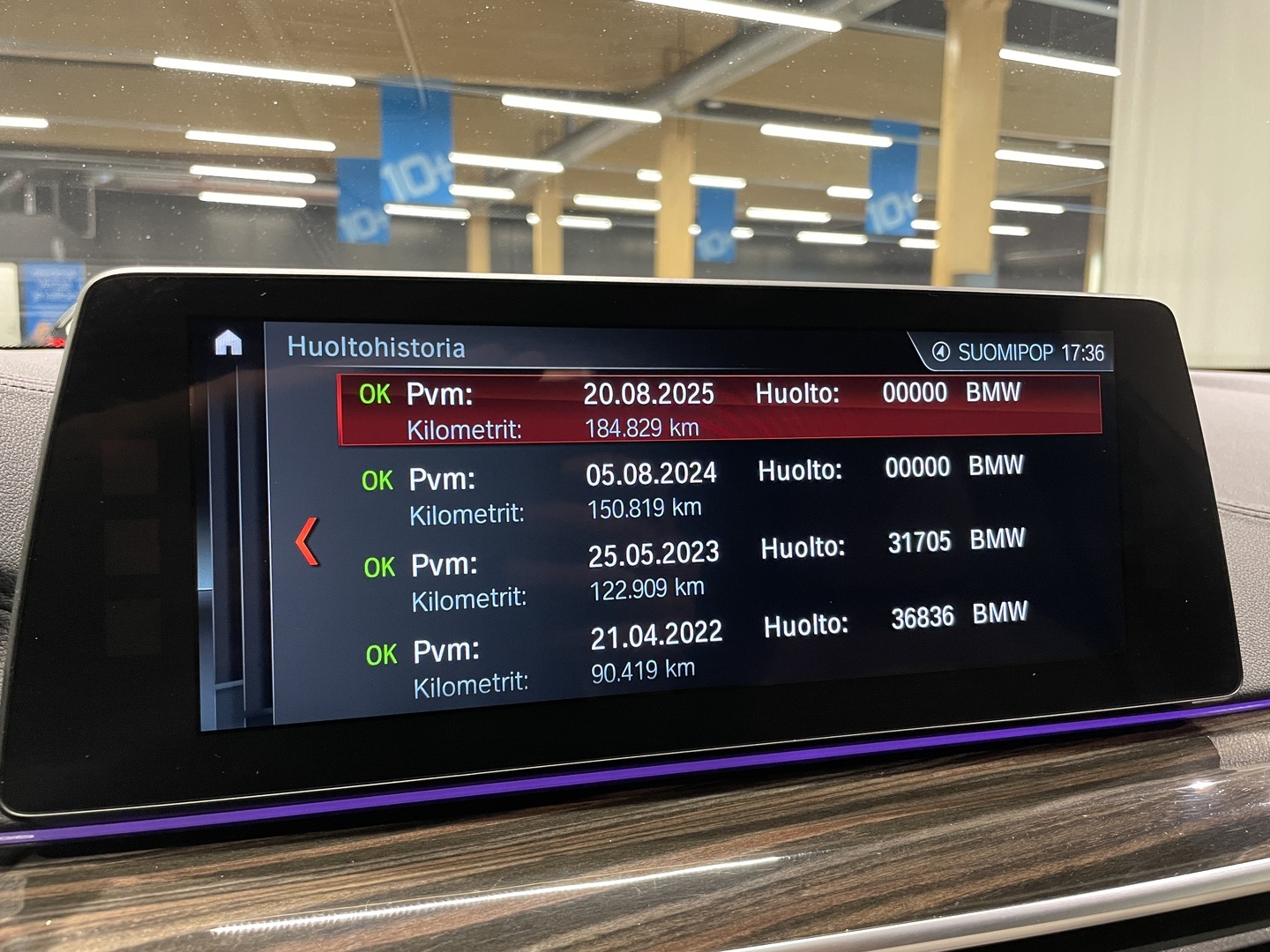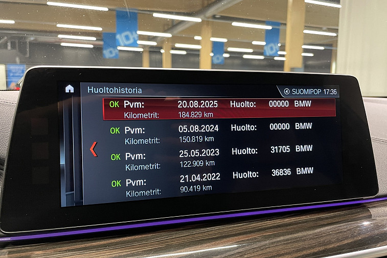 Viimeisin huolto tehty 184 tkm kohdalla, 8 / 2025
