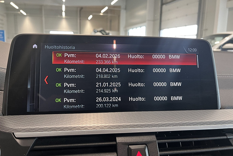 Viimeisin huolto tehty 233 366km kohdalla, 02 / 2026