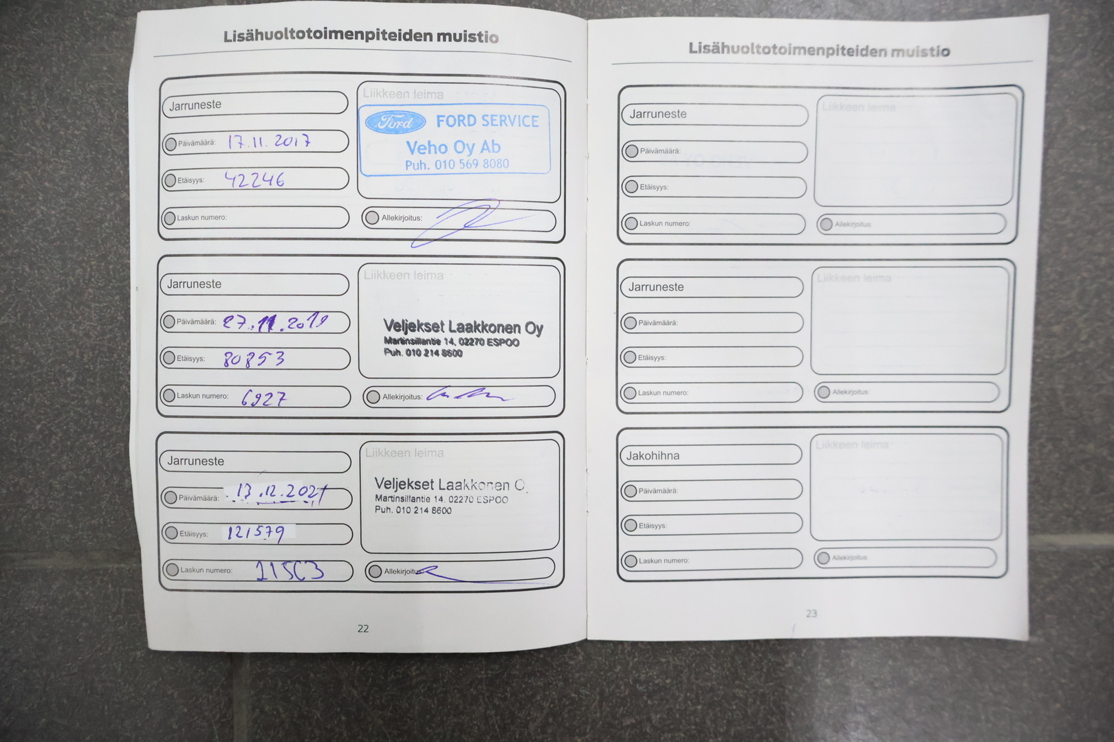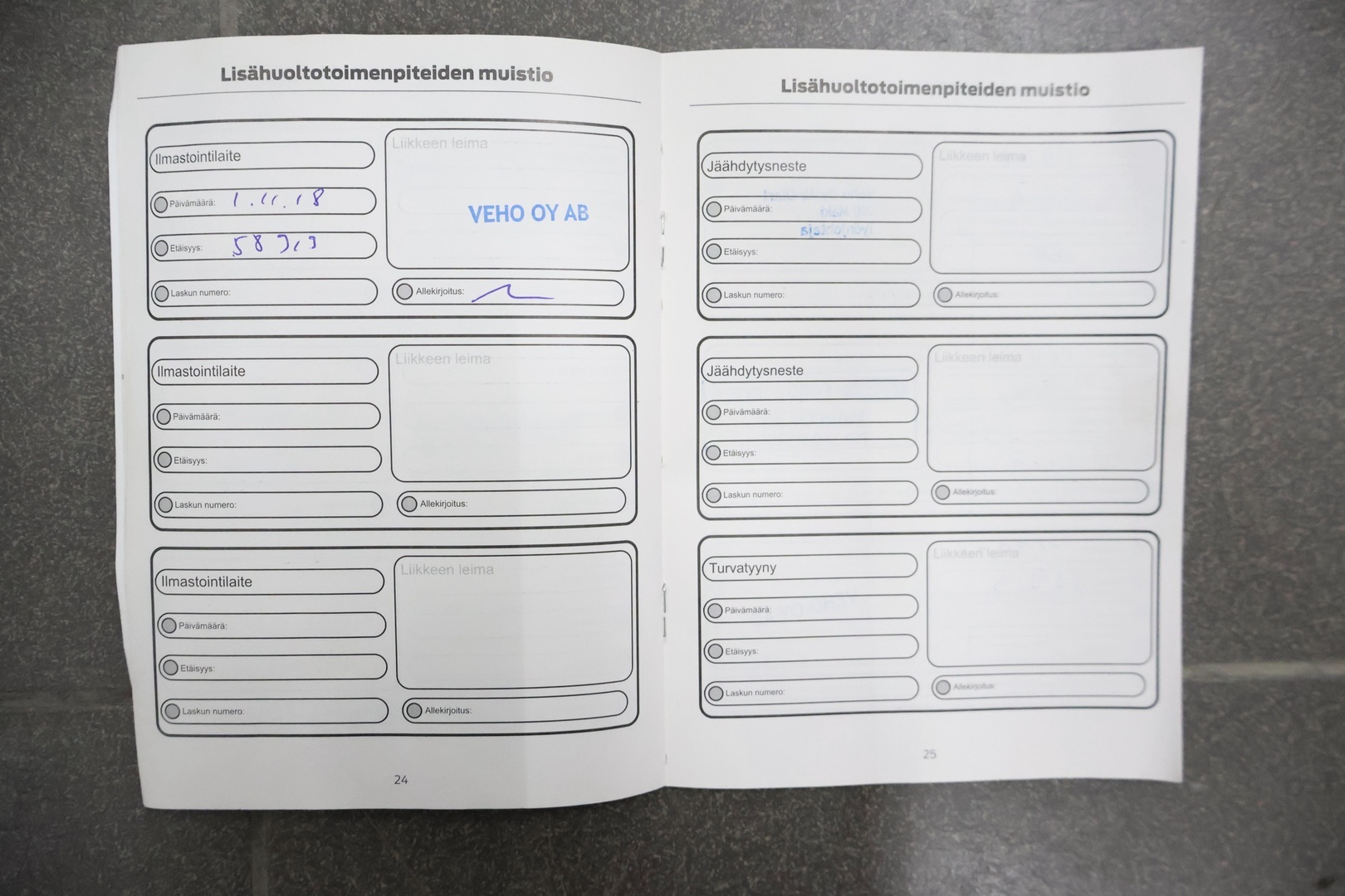 • Huoltokirja paperinen