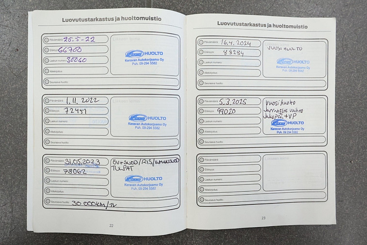 - Viimeisin huolto tehty 99 020km kohdalla, 03 / 2025