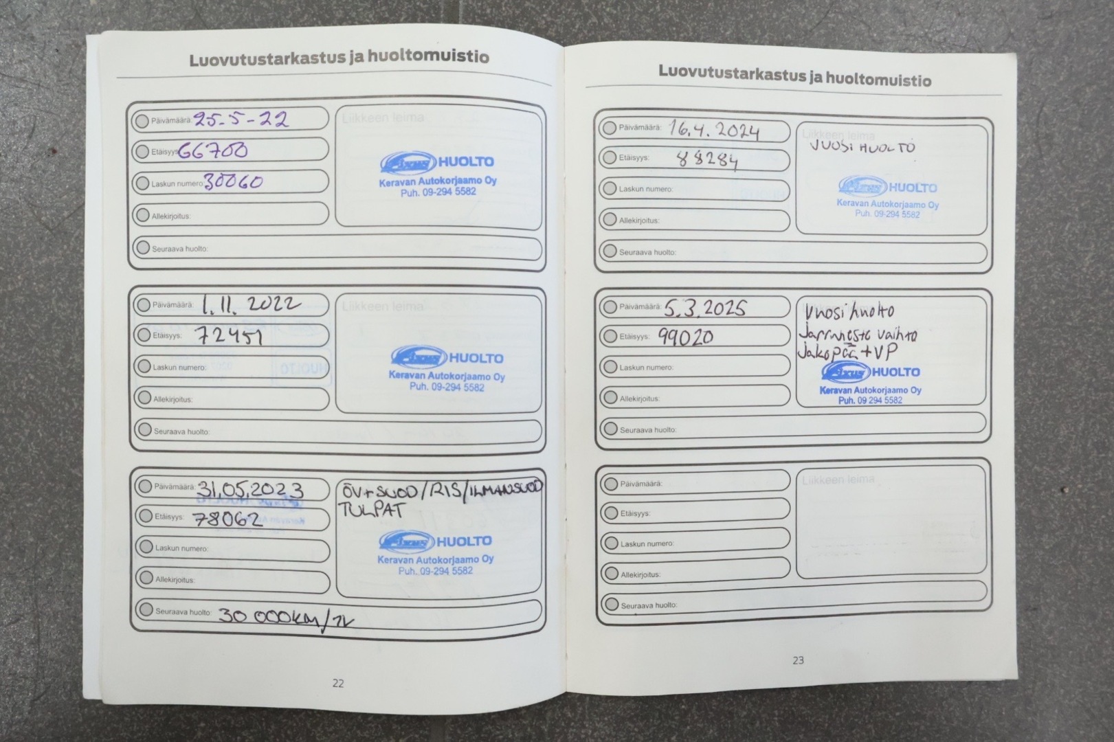 - Huoltokirja paperinen