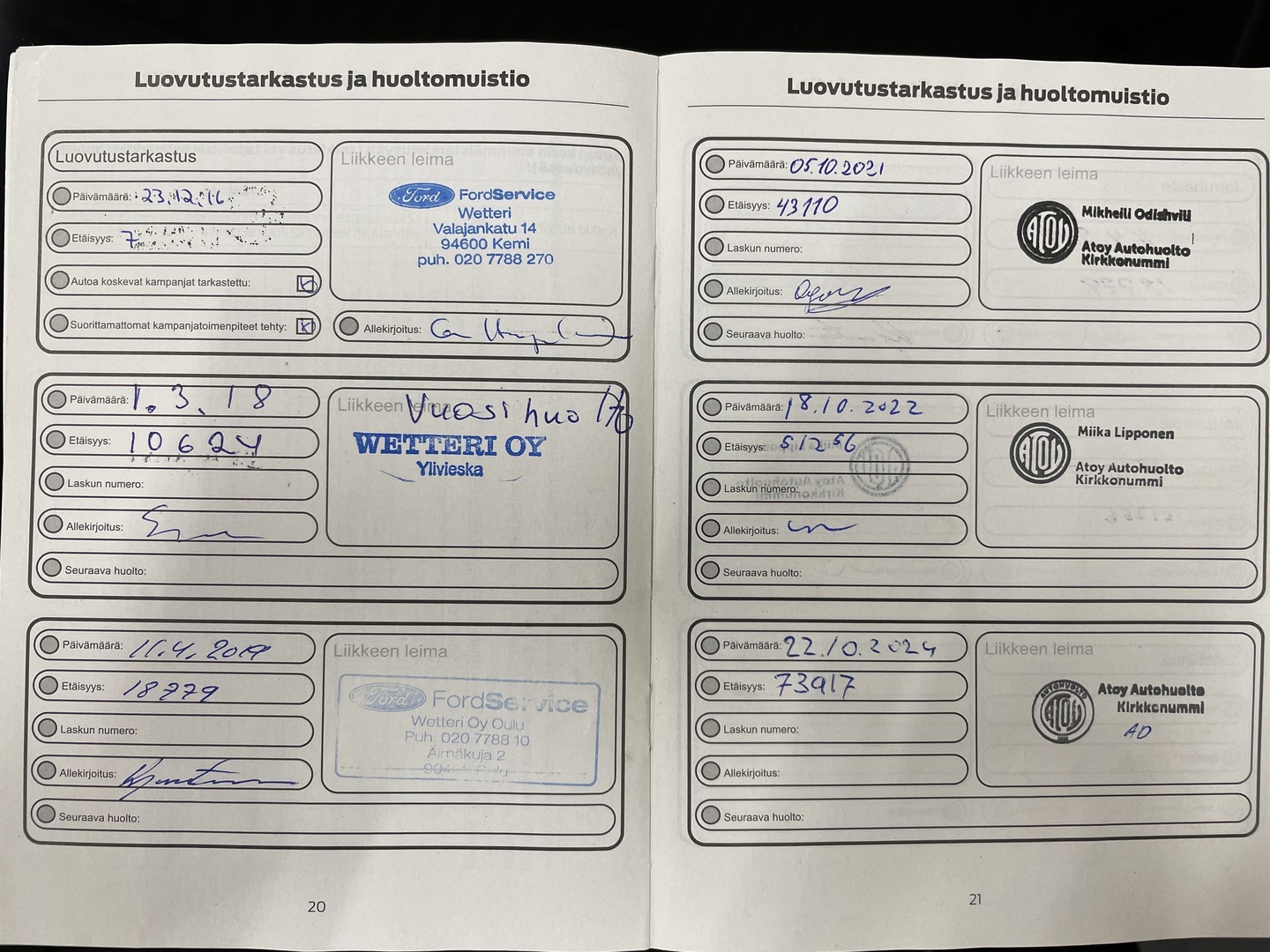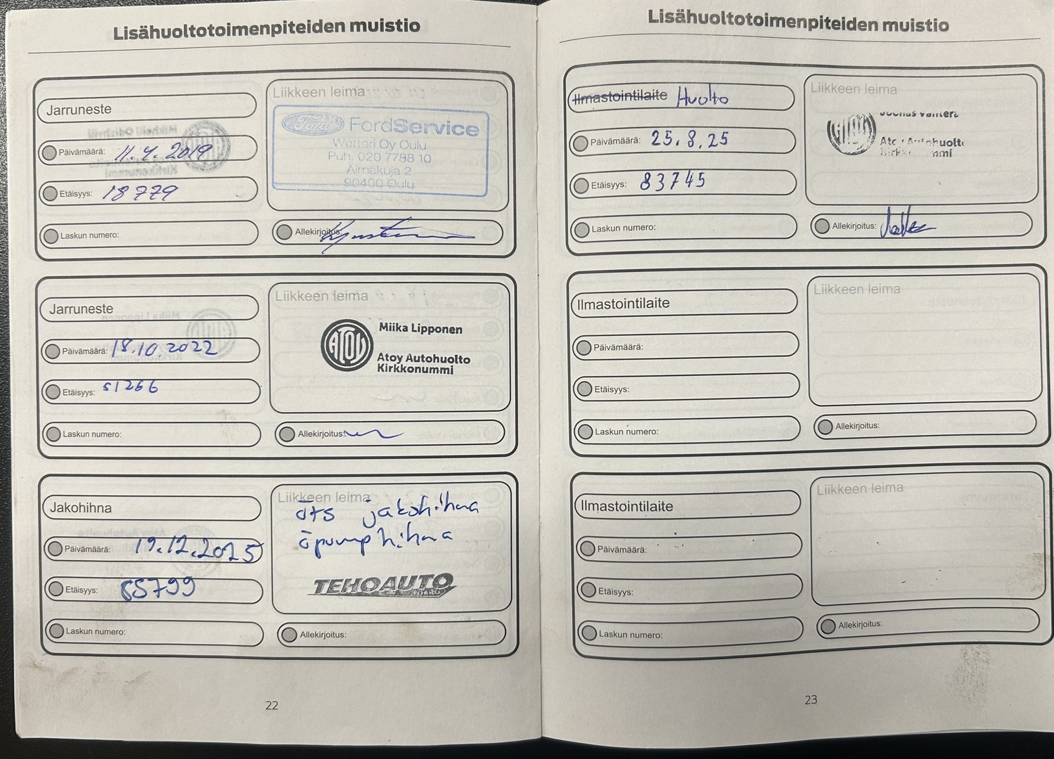 - Huoltokirja paperinen