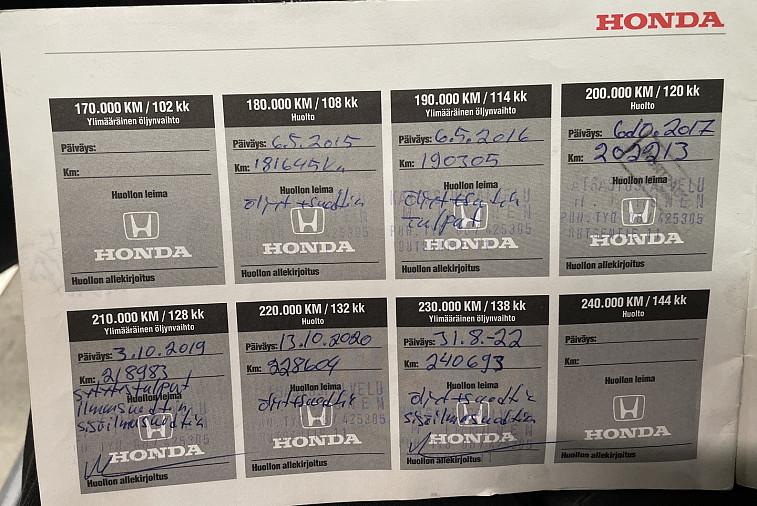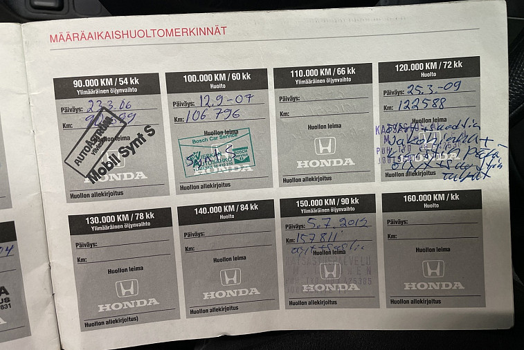 - Auton huoltohistoria ei ole säännöllinen, autoa on viime vuodet huollettu itse, ja kaikkia huoltoja ei ole merkattu huoltokirjaan.