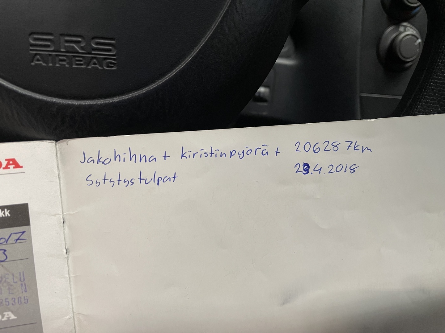 - Jakohihna vaihdettu 206287km kohdalla, 04 / 2018
