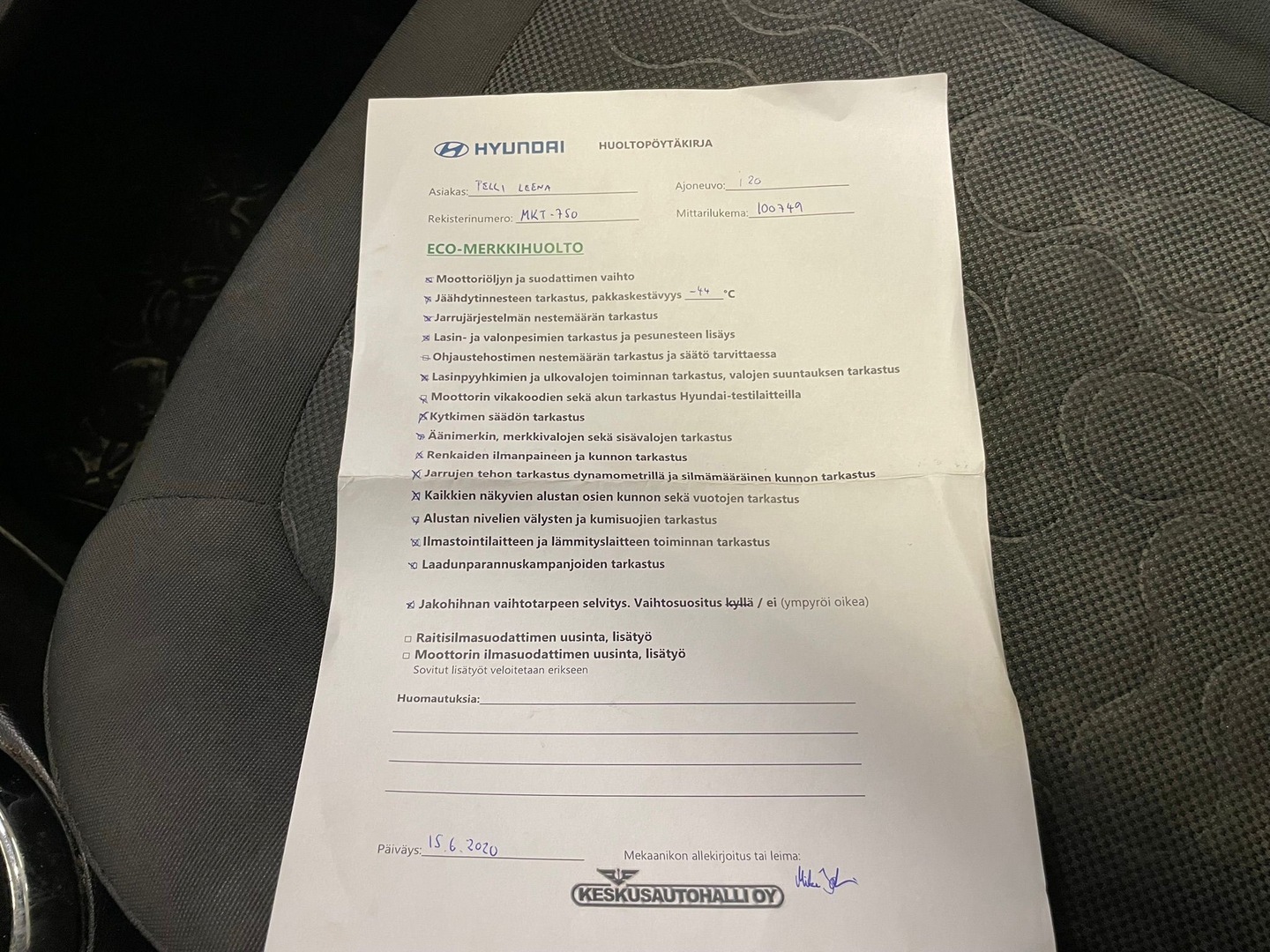 - Huoltokirja paperinen