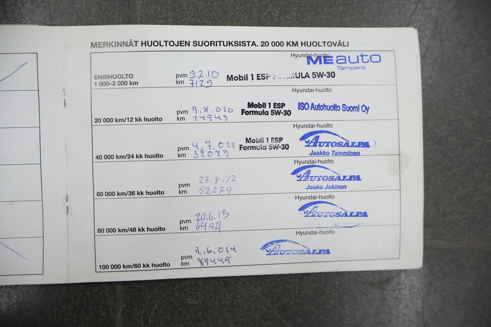 - Huoltokirja paperinen
