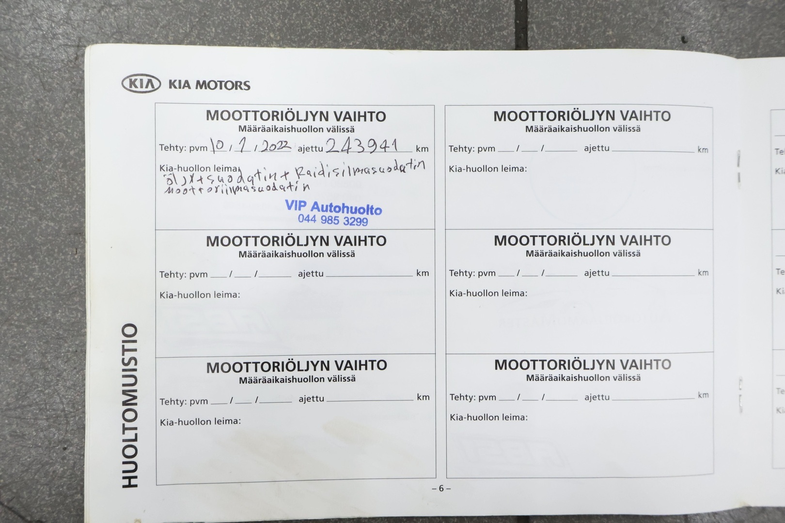 - Huoltokirja paperinen