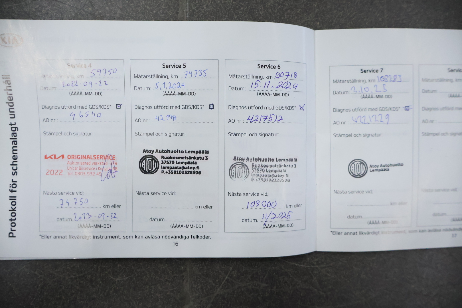 Viimeisin huolto tehty 108 283km kohdalla, 10 / 2025