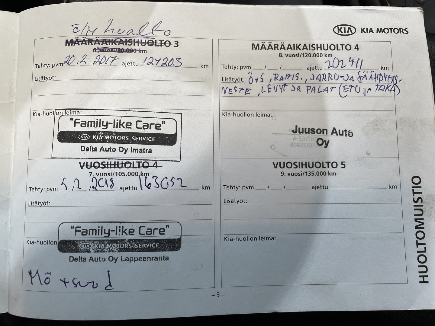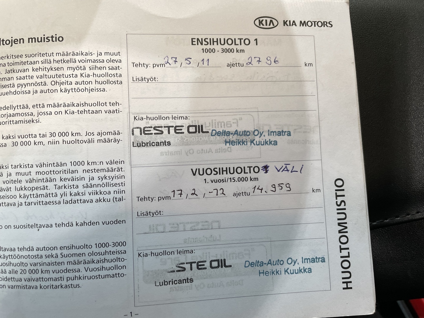 - Huoltokirja paperinen