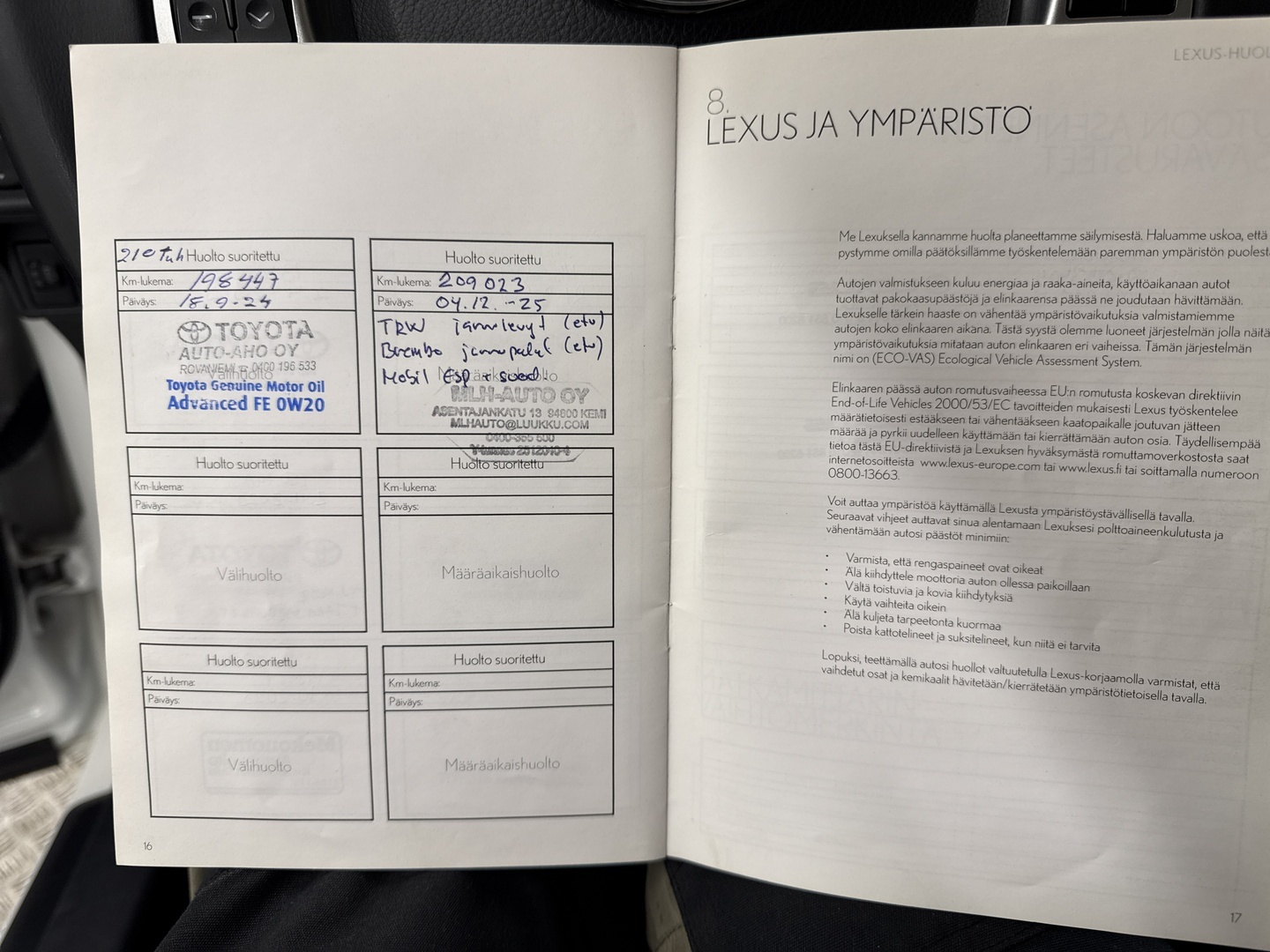 • Viimeisin huolto tehty 209 tkm kohdalla, 12 / 2025