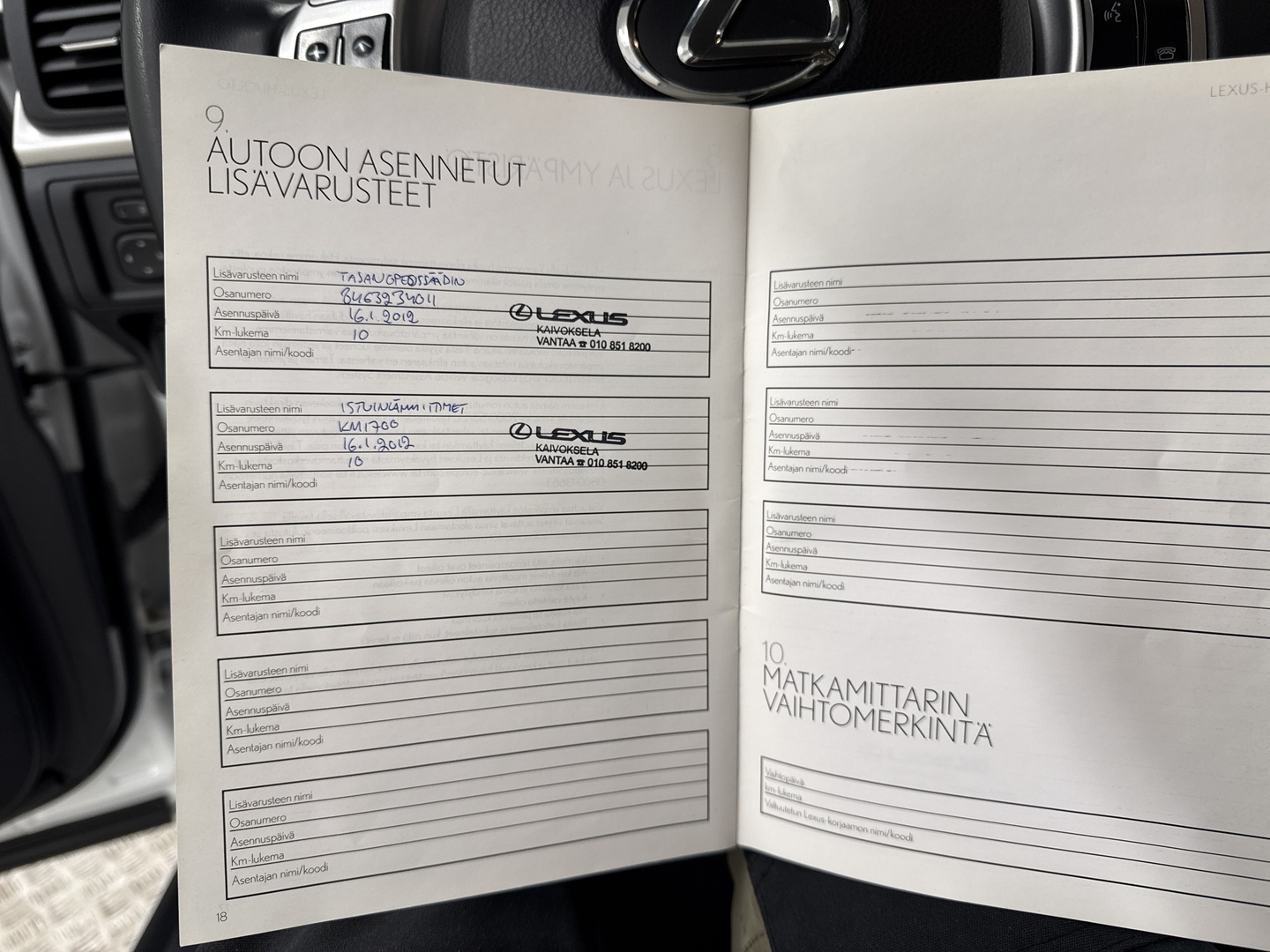 • Huoltokirja paperinen