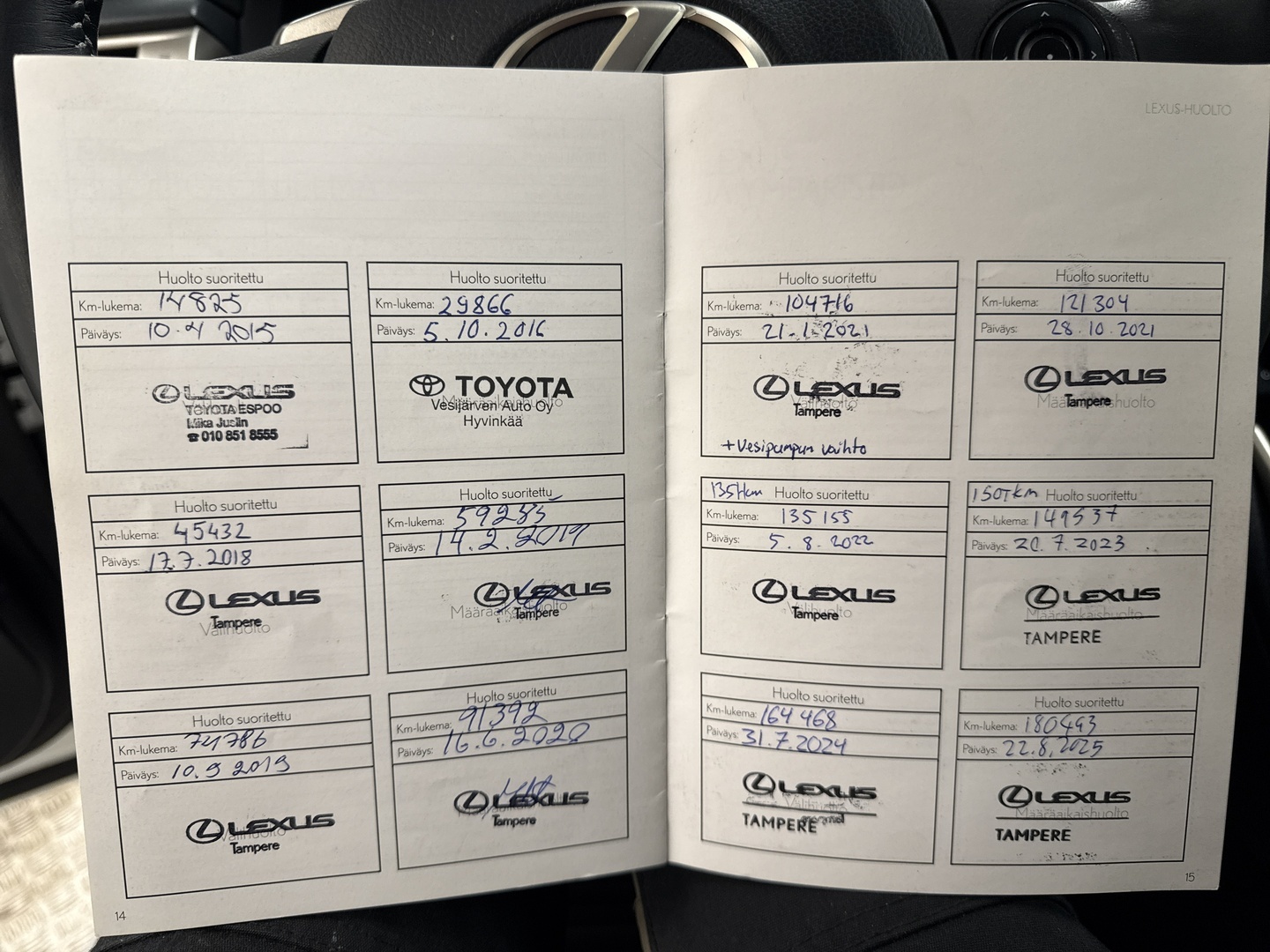 Viimeisin huolto tehty 180 000km kohdalla, 08 / 2025