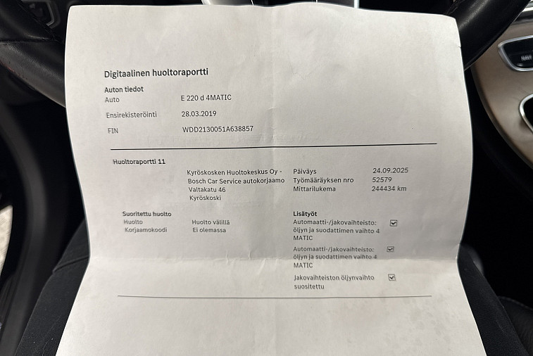 - Viimeisin huolto tehty 244 434km kohdalla, 09 / 2025