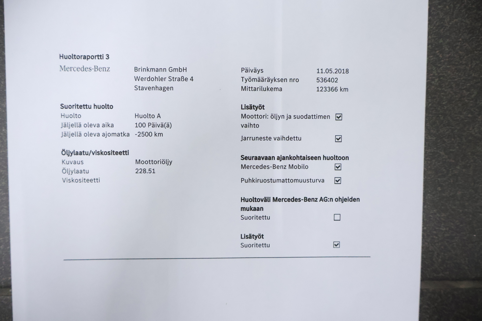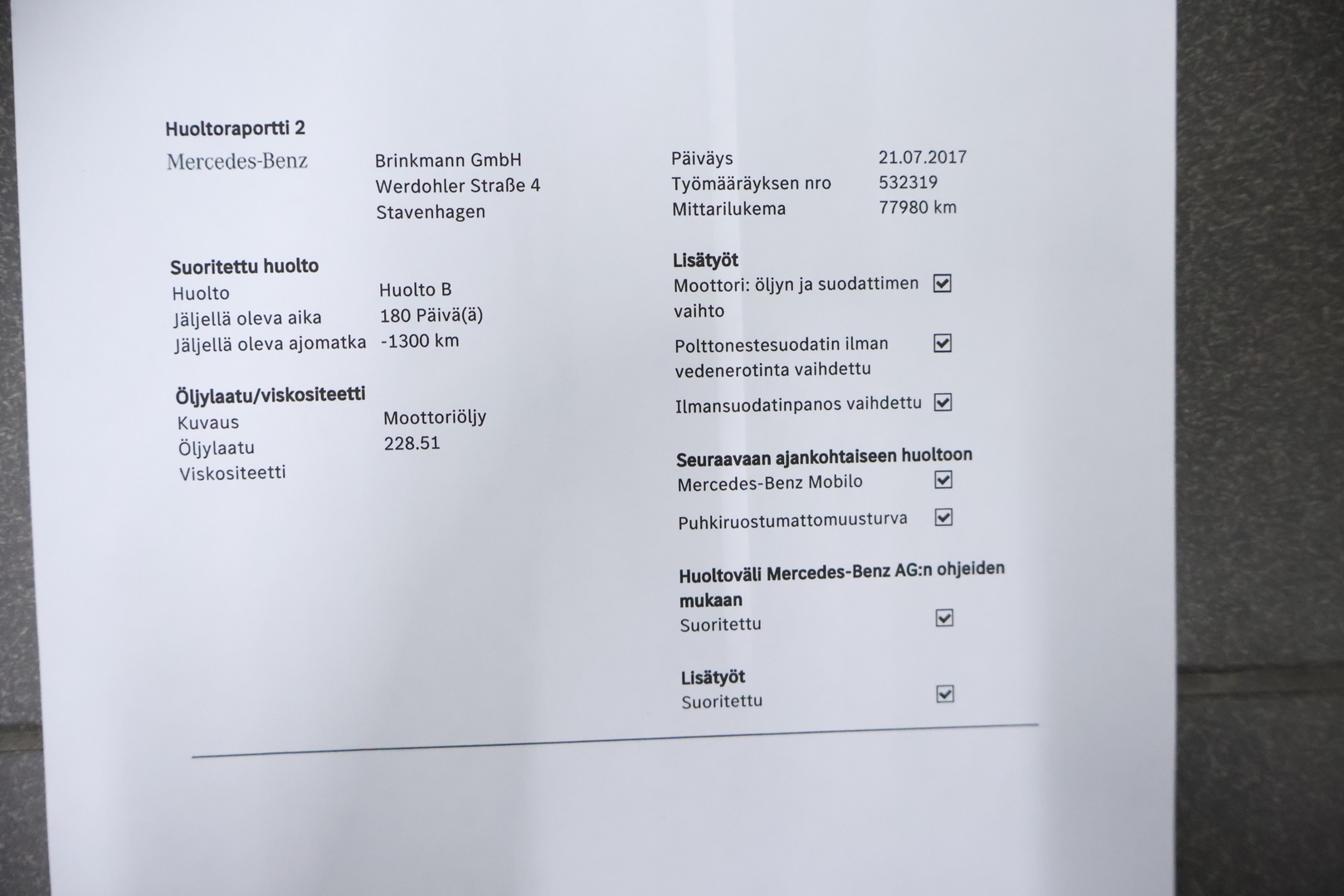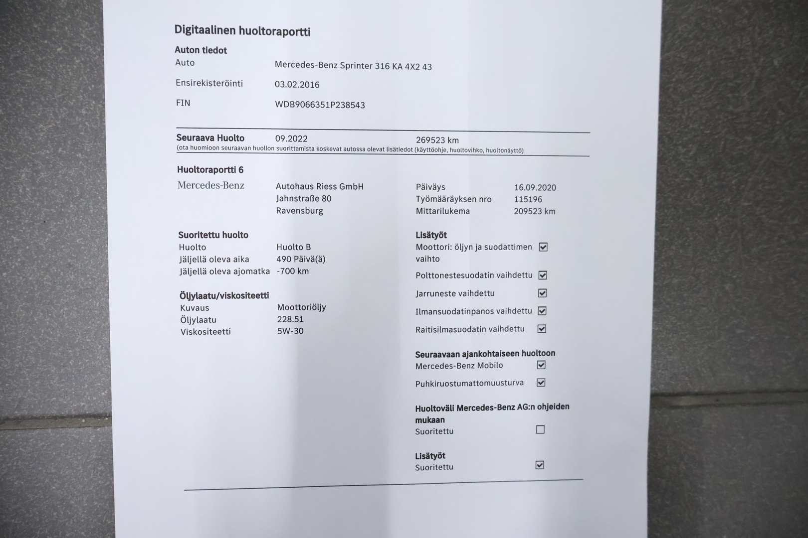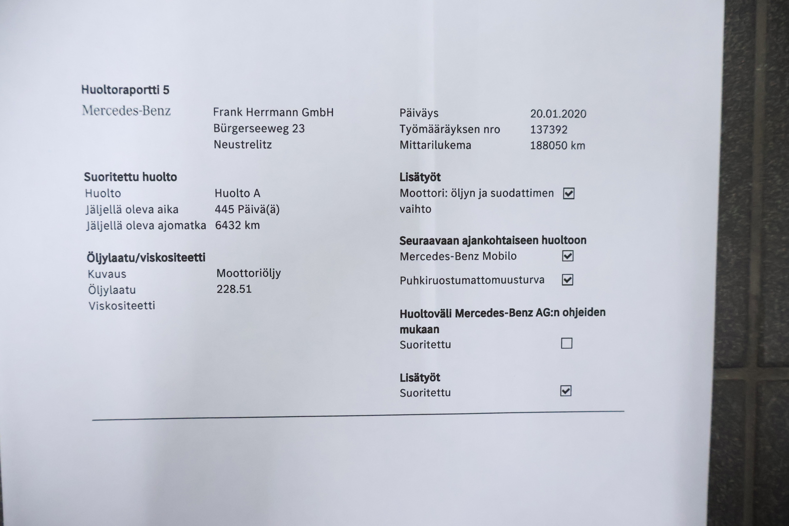 - Mittarilukema: 305000 km