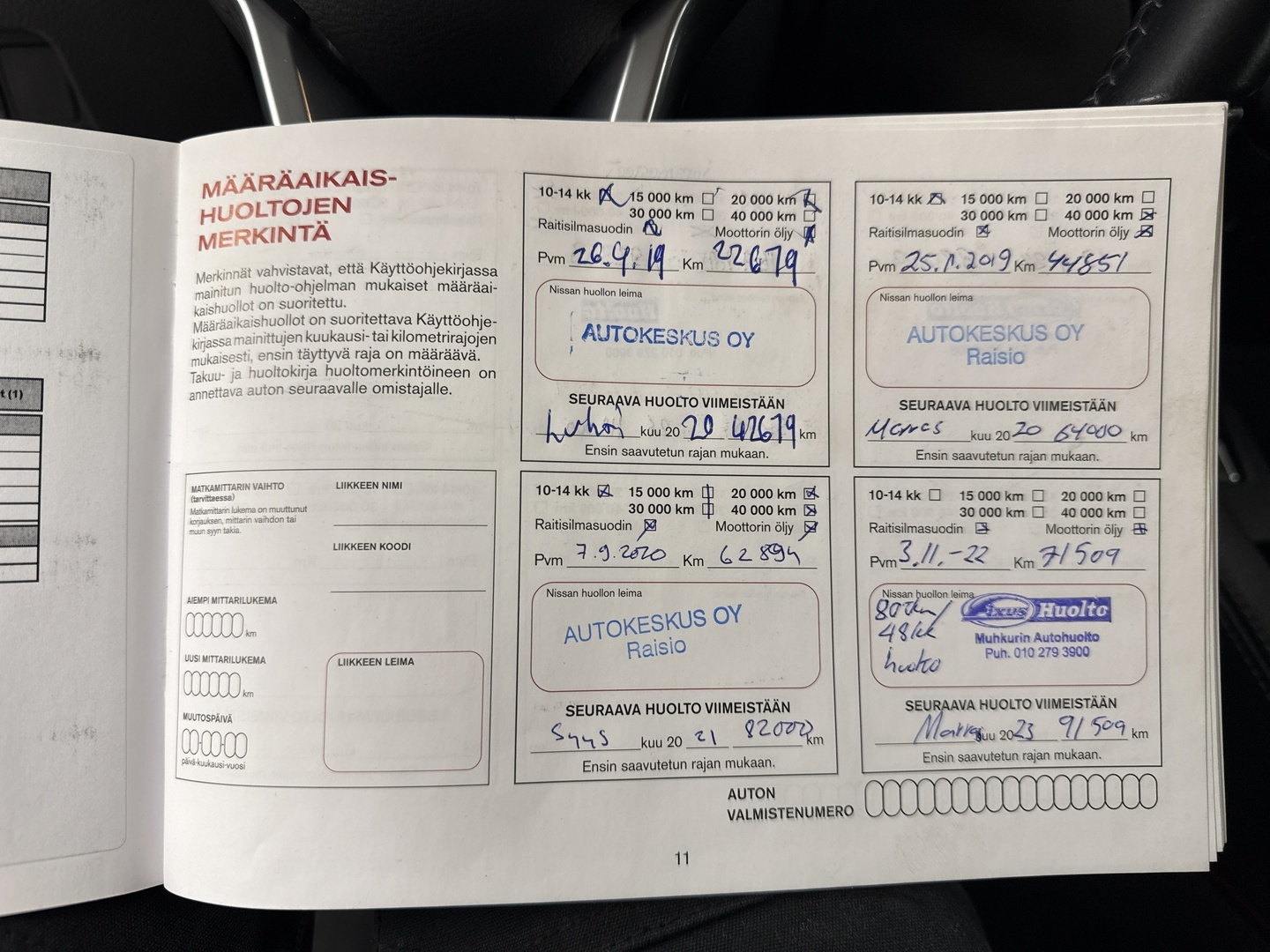 - Viimeisin huolto tehty 92 753km kohdalla, 09 / 2025