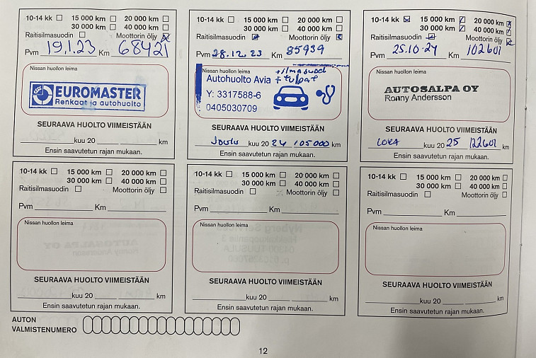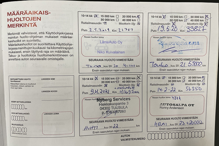 • Huoltokirja paperinen