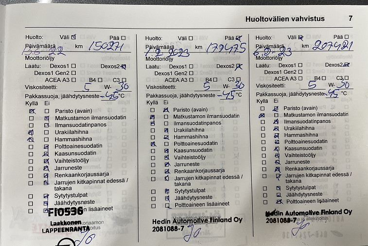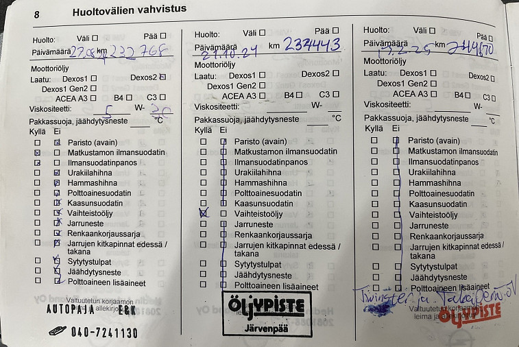 - Viimeisin huolto tehty 261187 km kohdalla, 7 / 2025