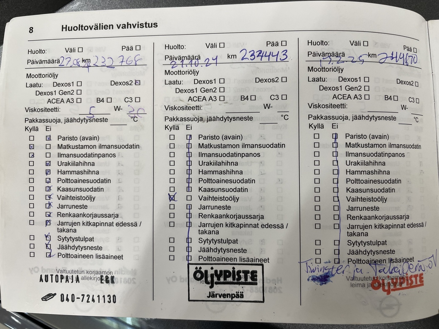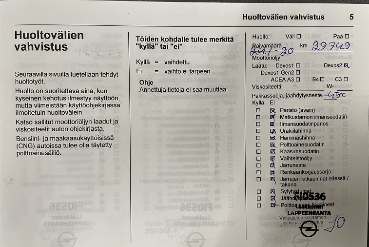 - Huoltokirja paperinen