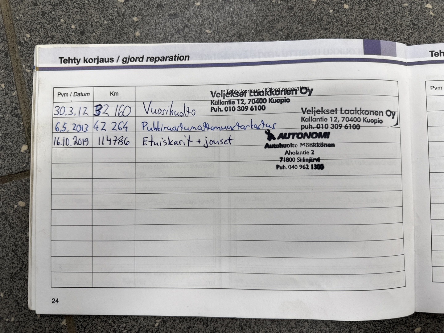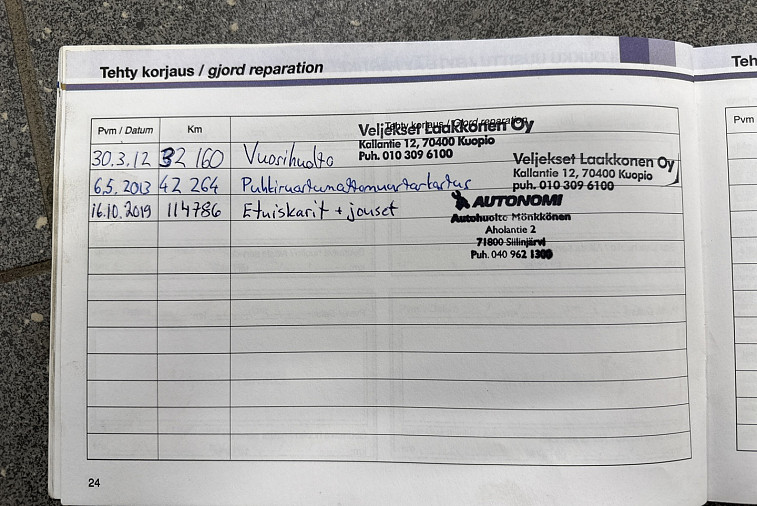 - Huoltokirja paperinen