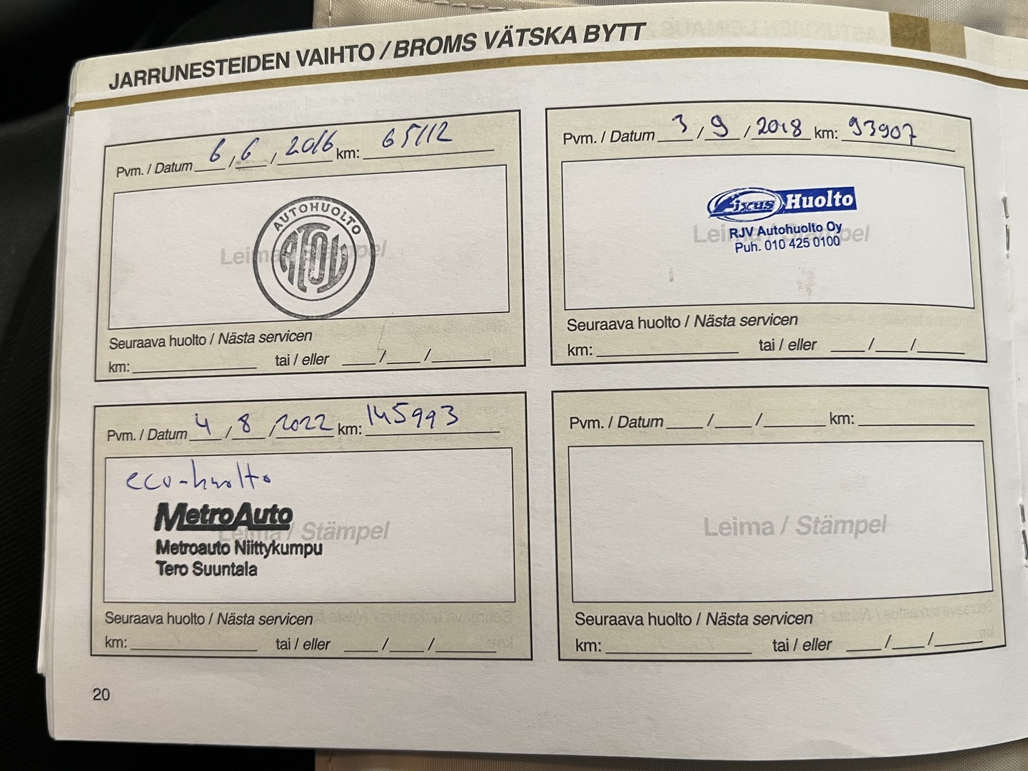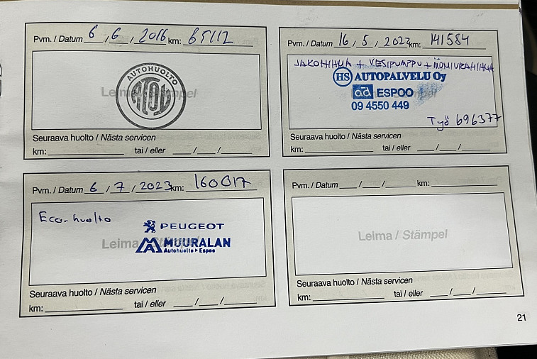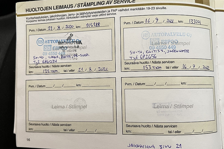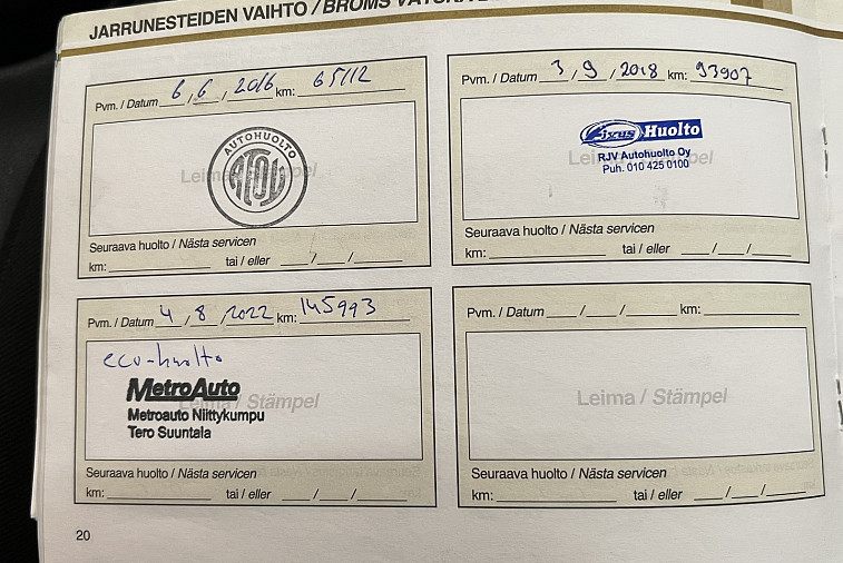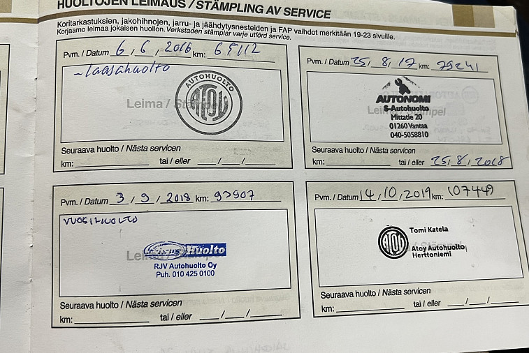 - Viimeisin huolto tehty 160 017km kohdalla