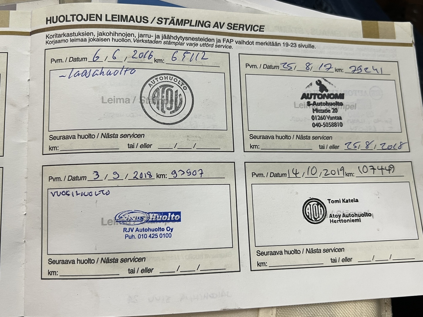- Huoltokirja paperinen