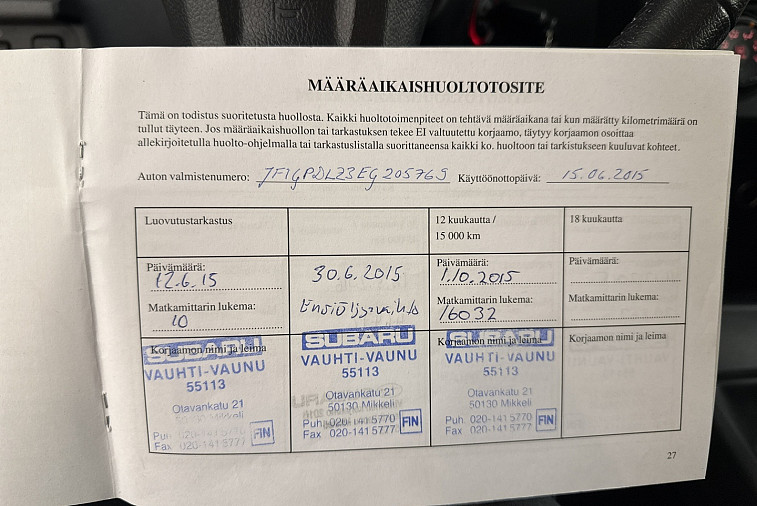 - Viimeisin huolto tehty 292 tkm kohdalla, 12/ 2025