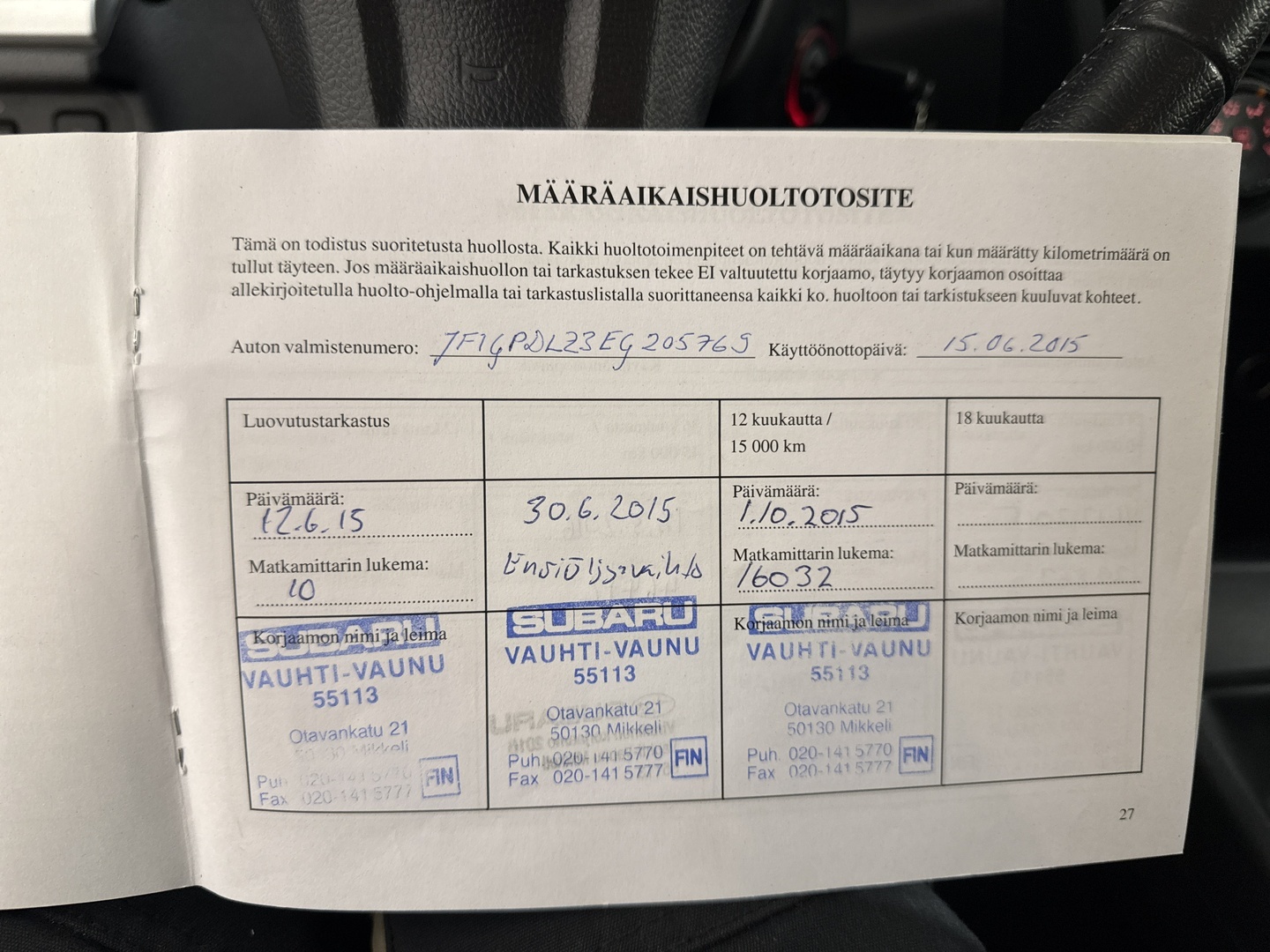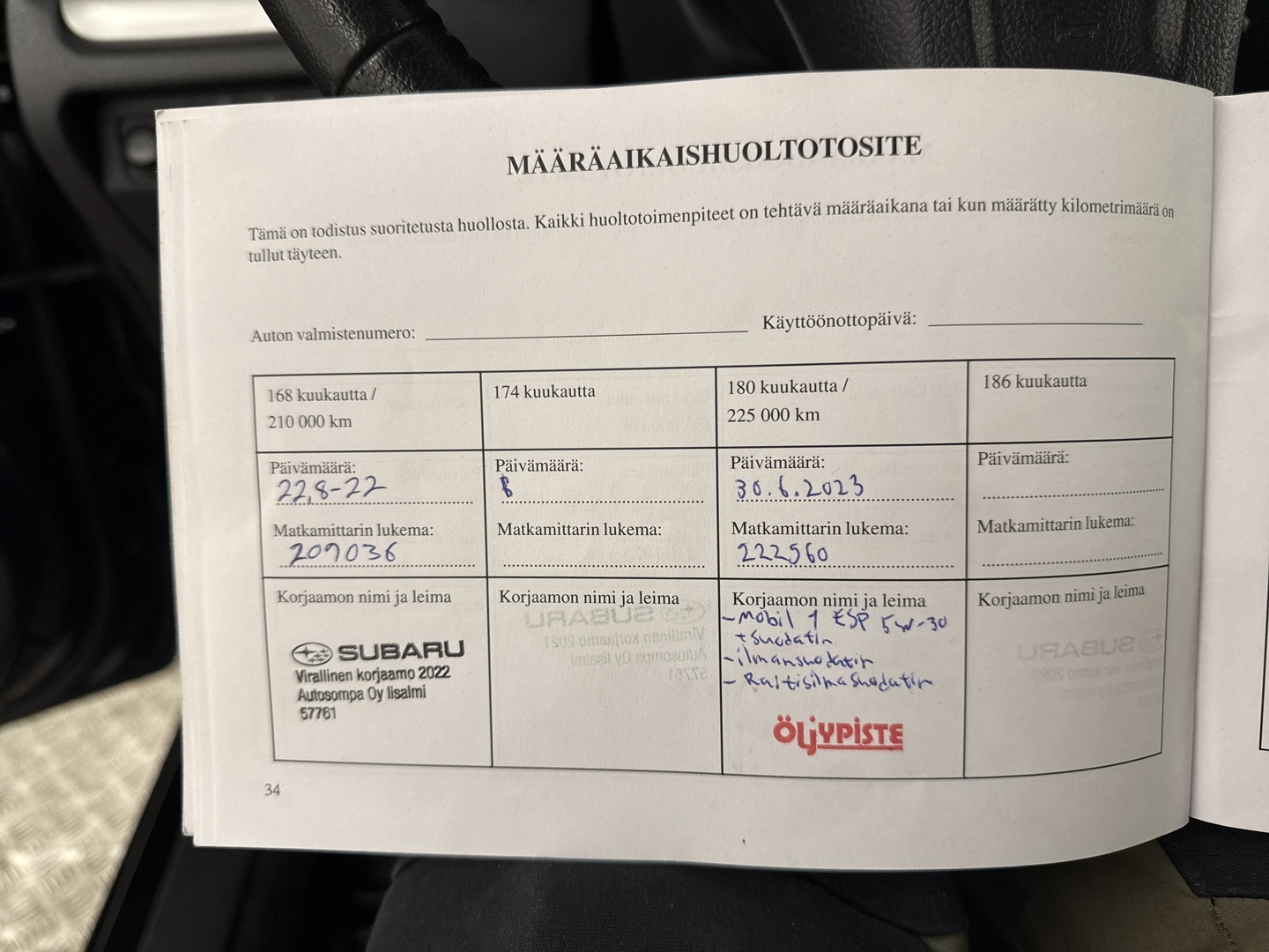 - Huoltokirja paperinen
