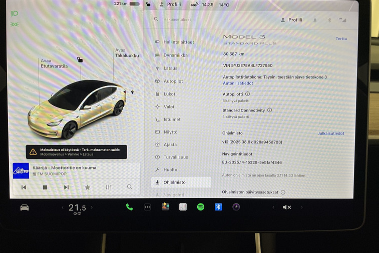 - Myydään huippuvarusteltu ja erinomaisesti pidetty Tesla Model 3 Standard Range Plus, joka tarjoaa Teslan tunnetun ajomukavuuden, turvallisuuden ja suorituskyvyn tyylikkäässä paketissa. Auto on tuotu Saksasta ja otettu käyttöön 06/2020. Sähköinen huoltokirja on ajan tasalla. Akkukapasiteetti 54 kWh.