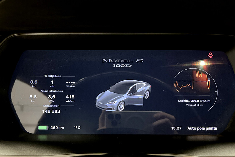 100 D **Ilma-alusta / Nahkaverhoilu / Adapt.vakkari / Kamera** - Huippuvarusteltu Tesla Model S 100D – teho, tyyli ja pitkä toimintasäde samassa paketissa!