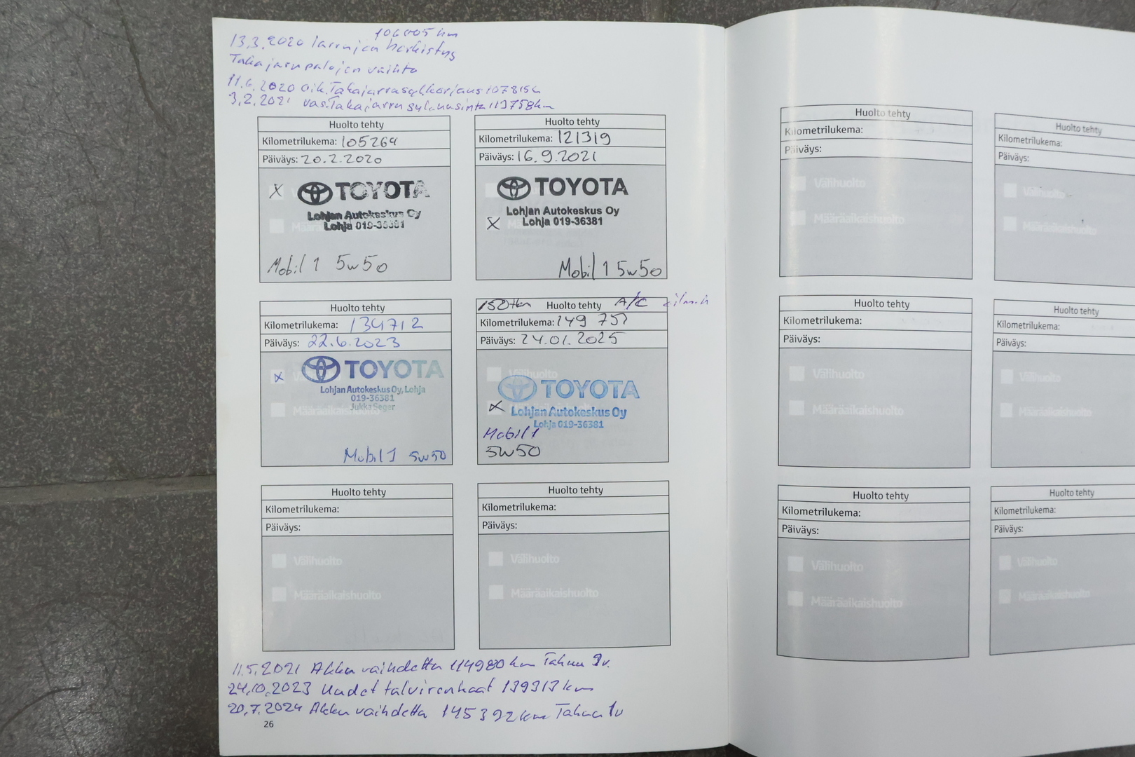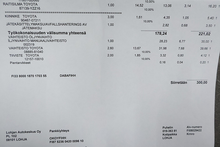 - Viimeisin huolto tehty 149 751km kohdalla, 01 / 2025