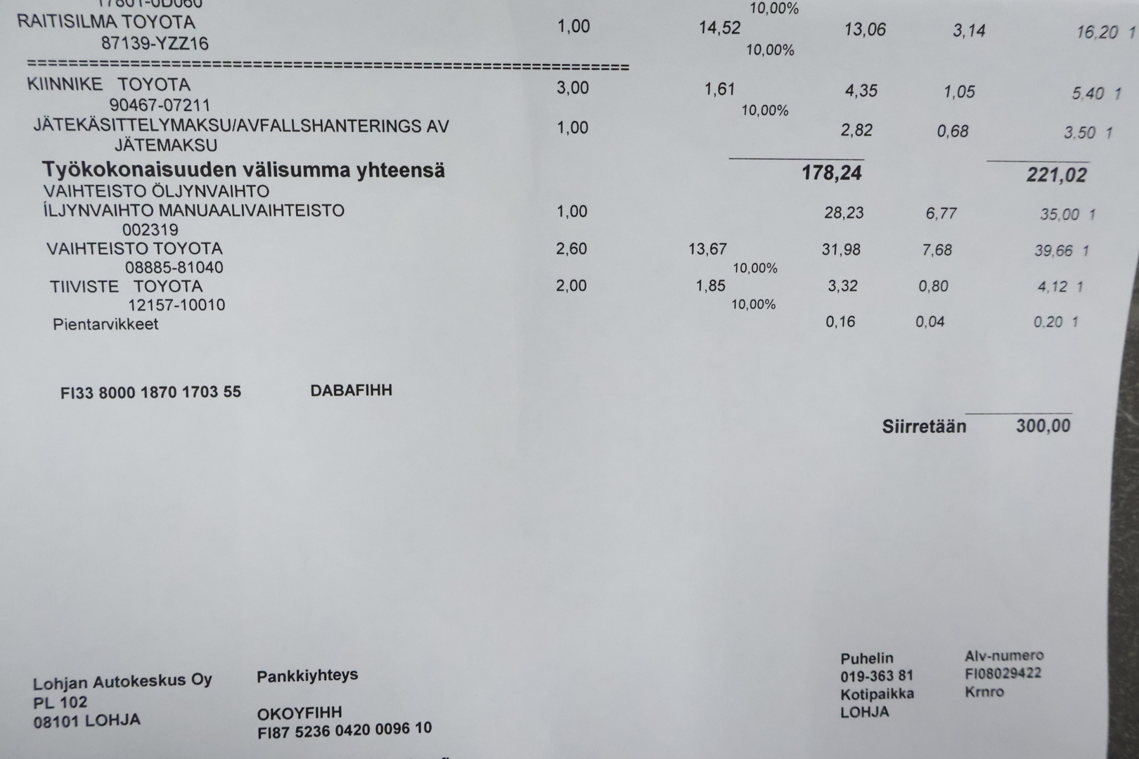 - Toimistokulut: 299€