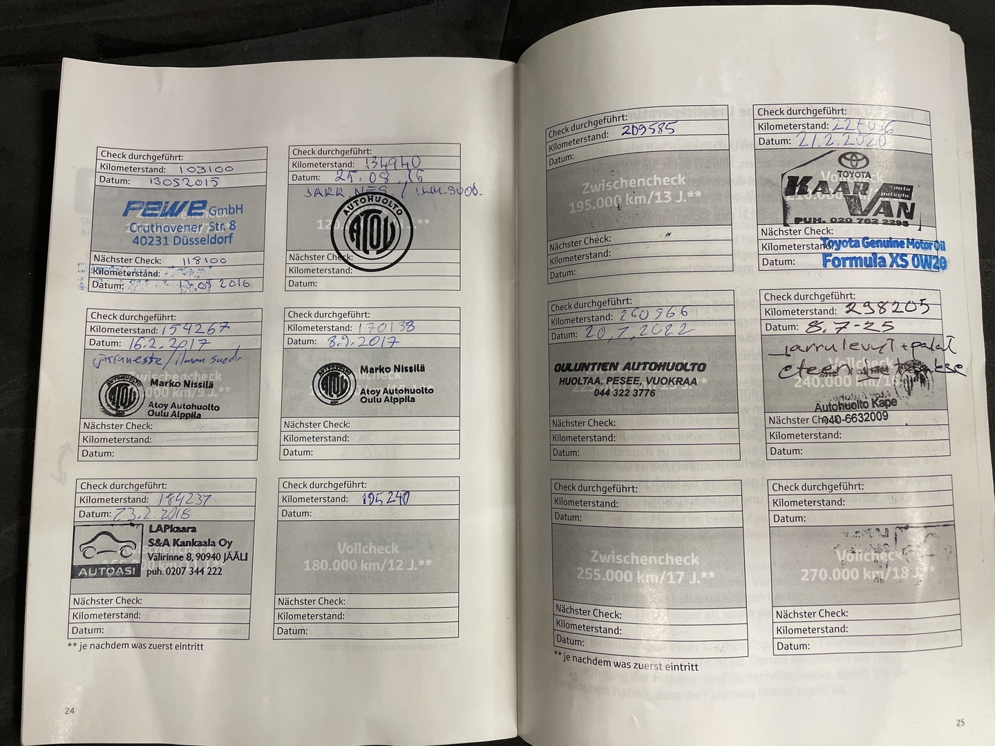 - Viimeisin huolto tehty 298205km kohdalla, 07 / 2025