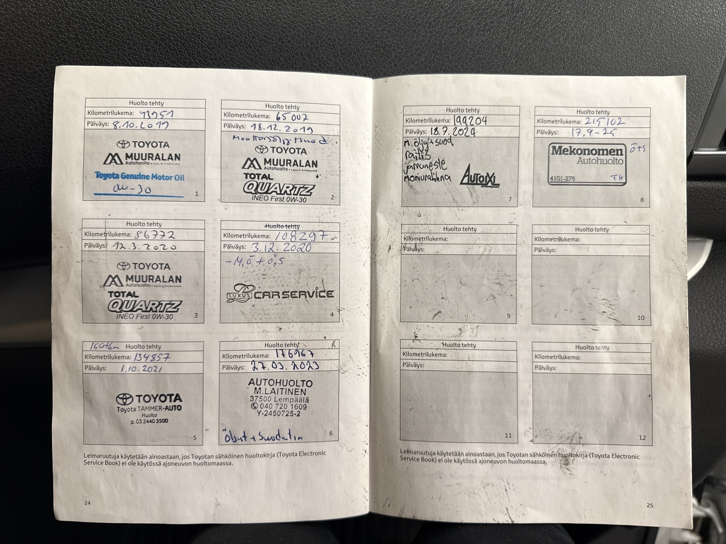 • Huoltokirja paperinen