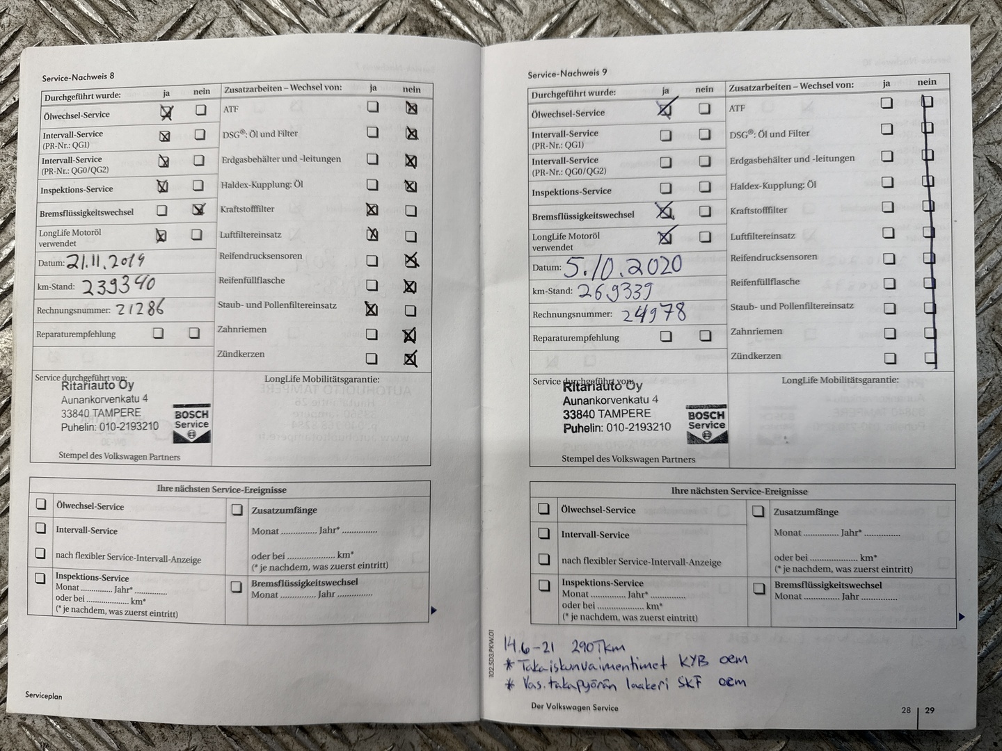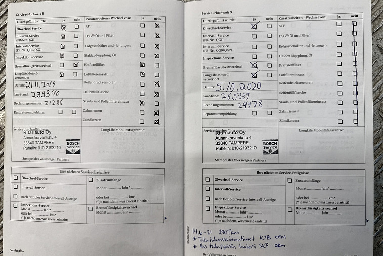 • Jakohihna vaihdettu 299 tkm kohdalla, 10 / 2021