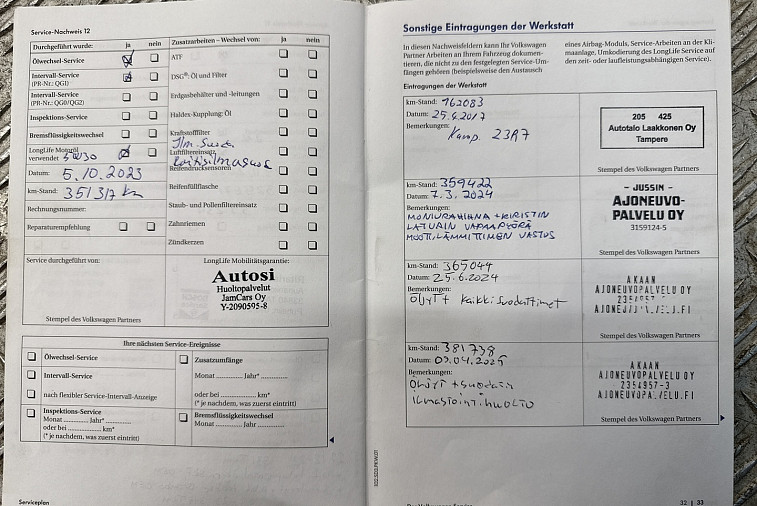 • Viimeisin huolto tehty 381 tkm kohdalla, 04 / 2025