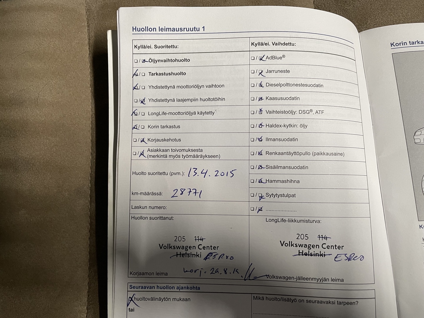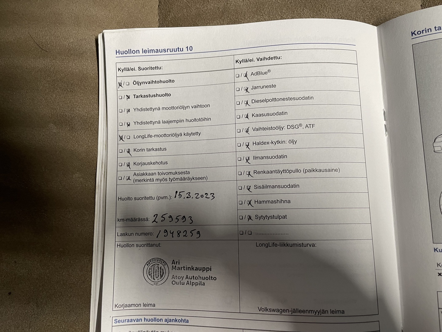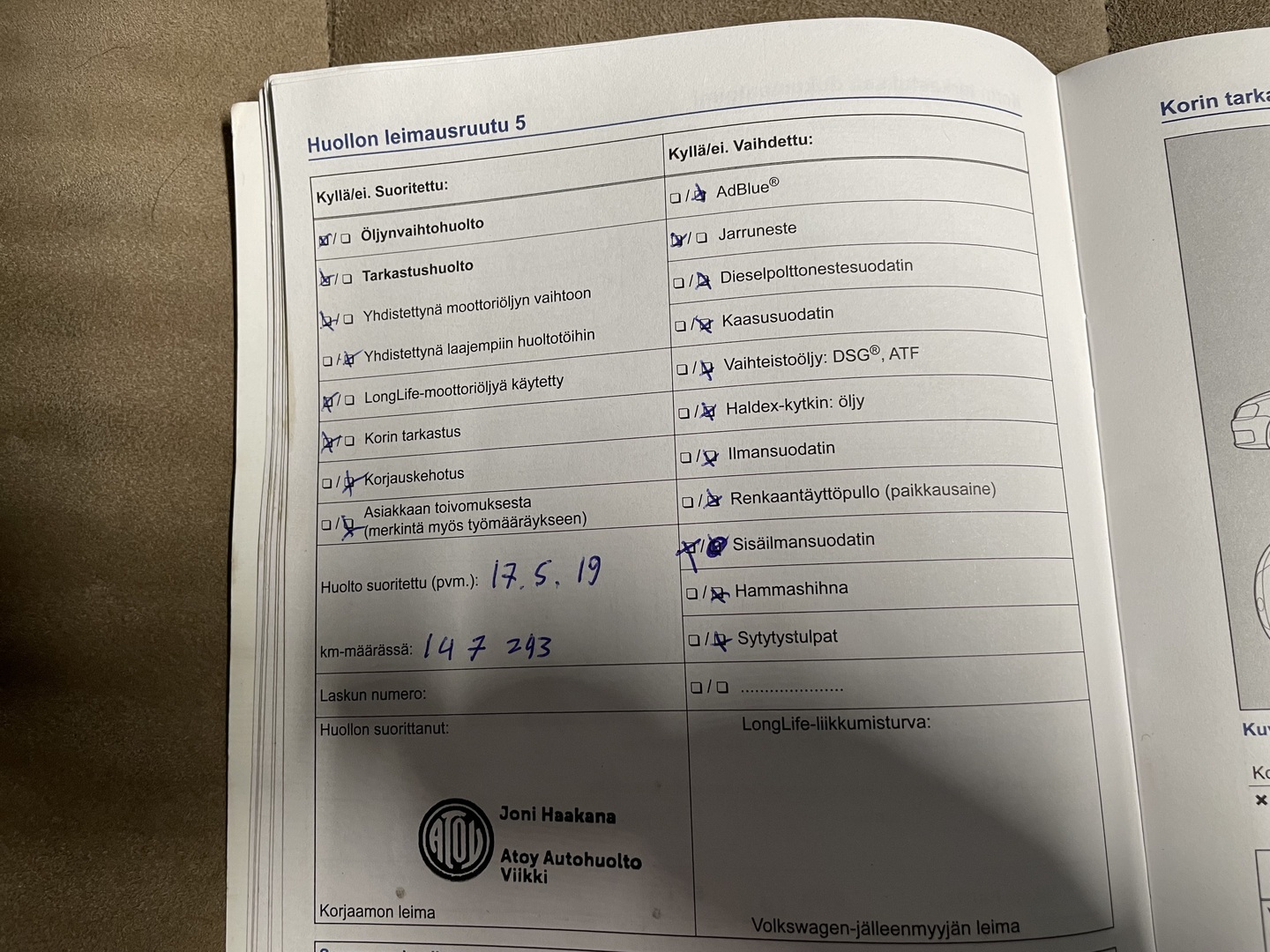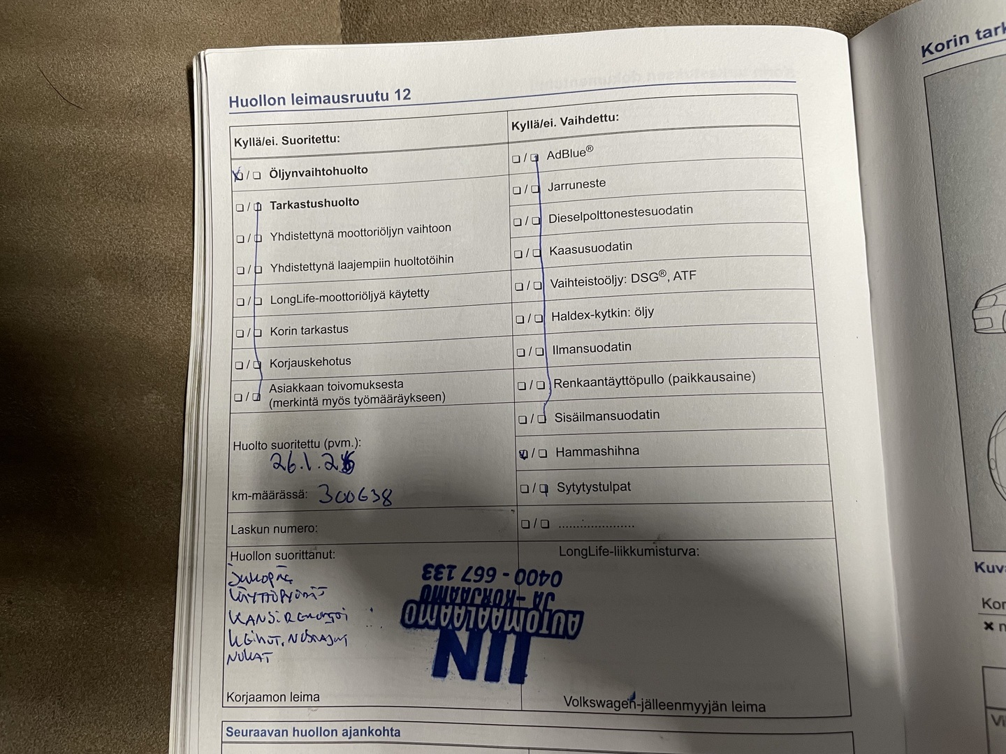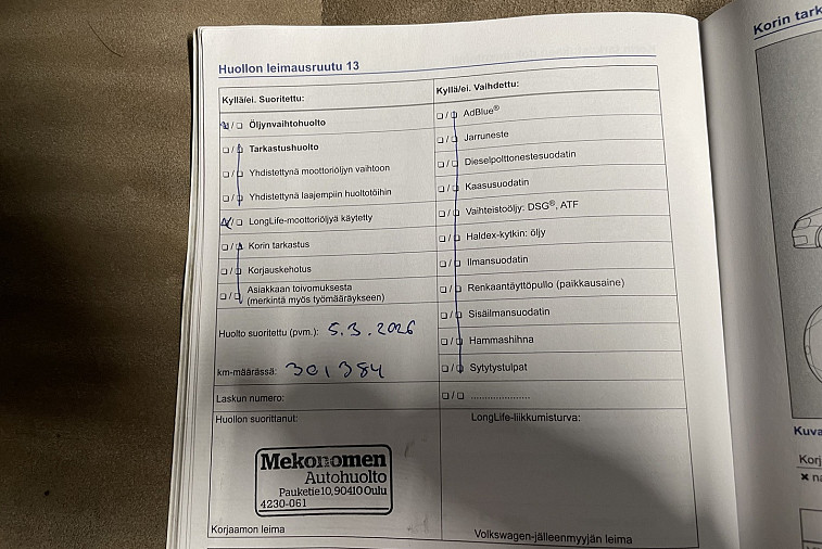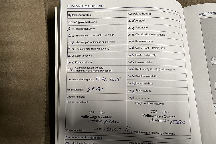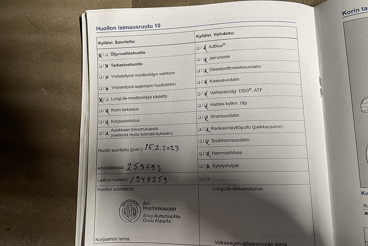 - Huoltokirja paperinen