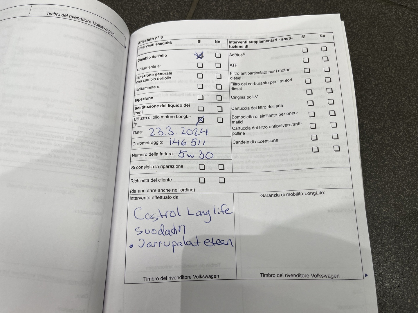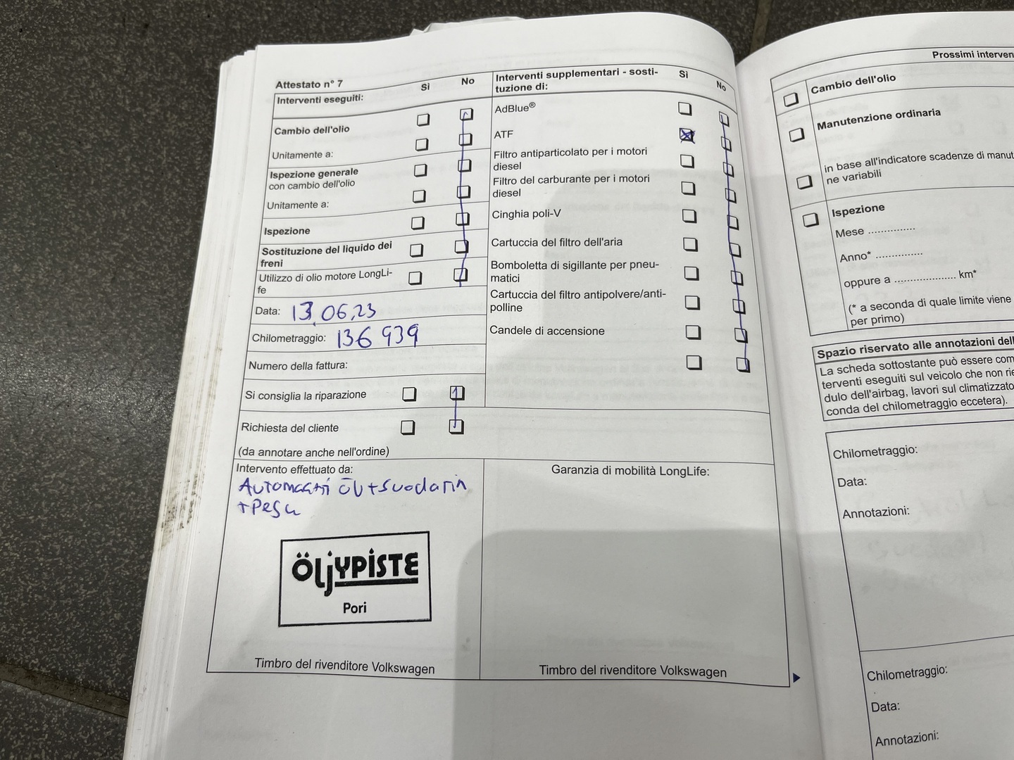 • Huoltokirja paperinen