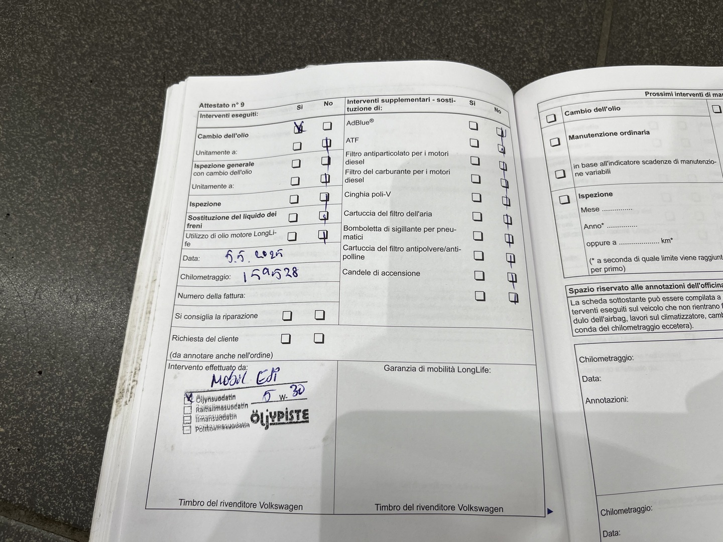 • Viimeisin huolto tehty 159 528km kohdalla, 05 / 2025