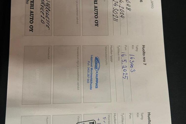 • Huoltokirja Paperinen
