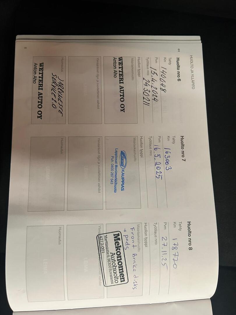 • Viimeisin huolto tehty: 178 770km kohdalla / 27.11.2025