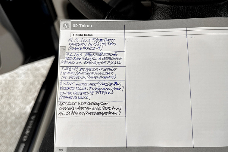 - Viimeisinhuolto tehty 347 tkm kohdalla 10 / 2024