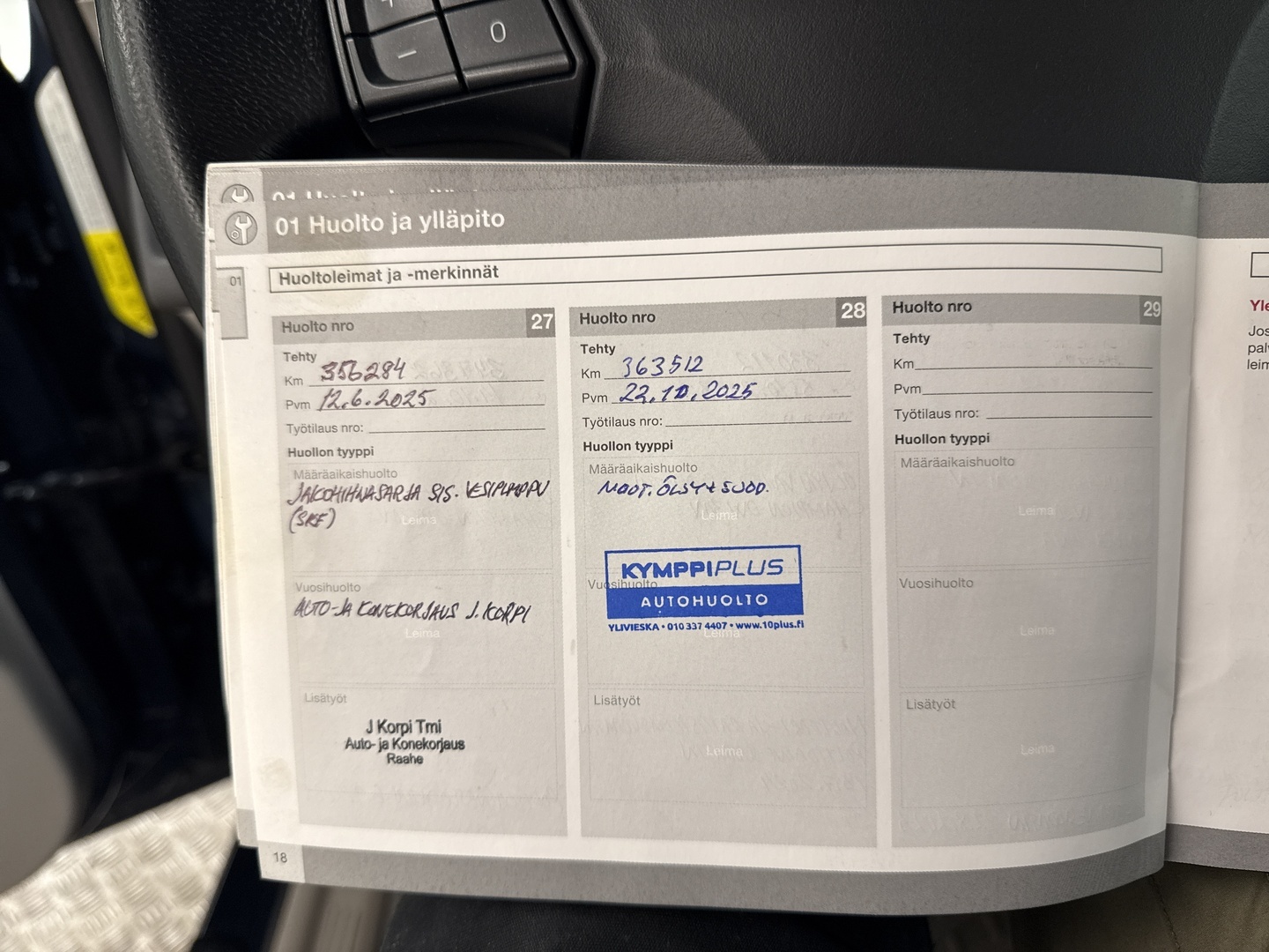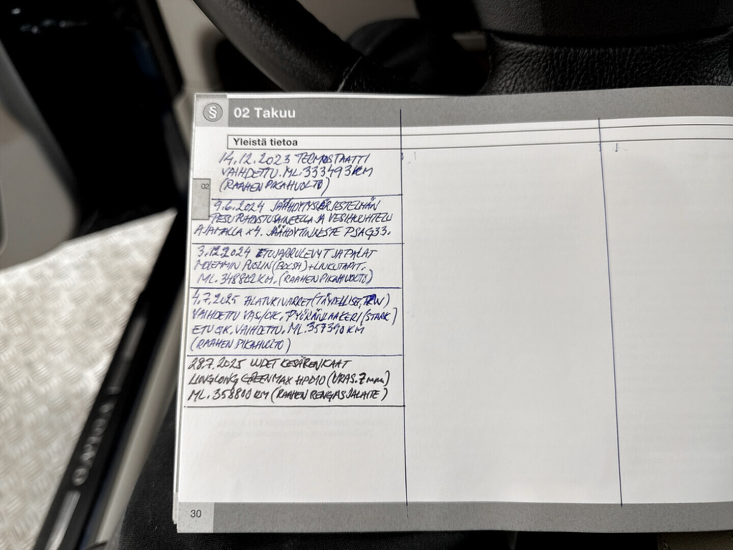 - Jakohihna vaihdettu 356 tkm kohdalla 06 / 2025