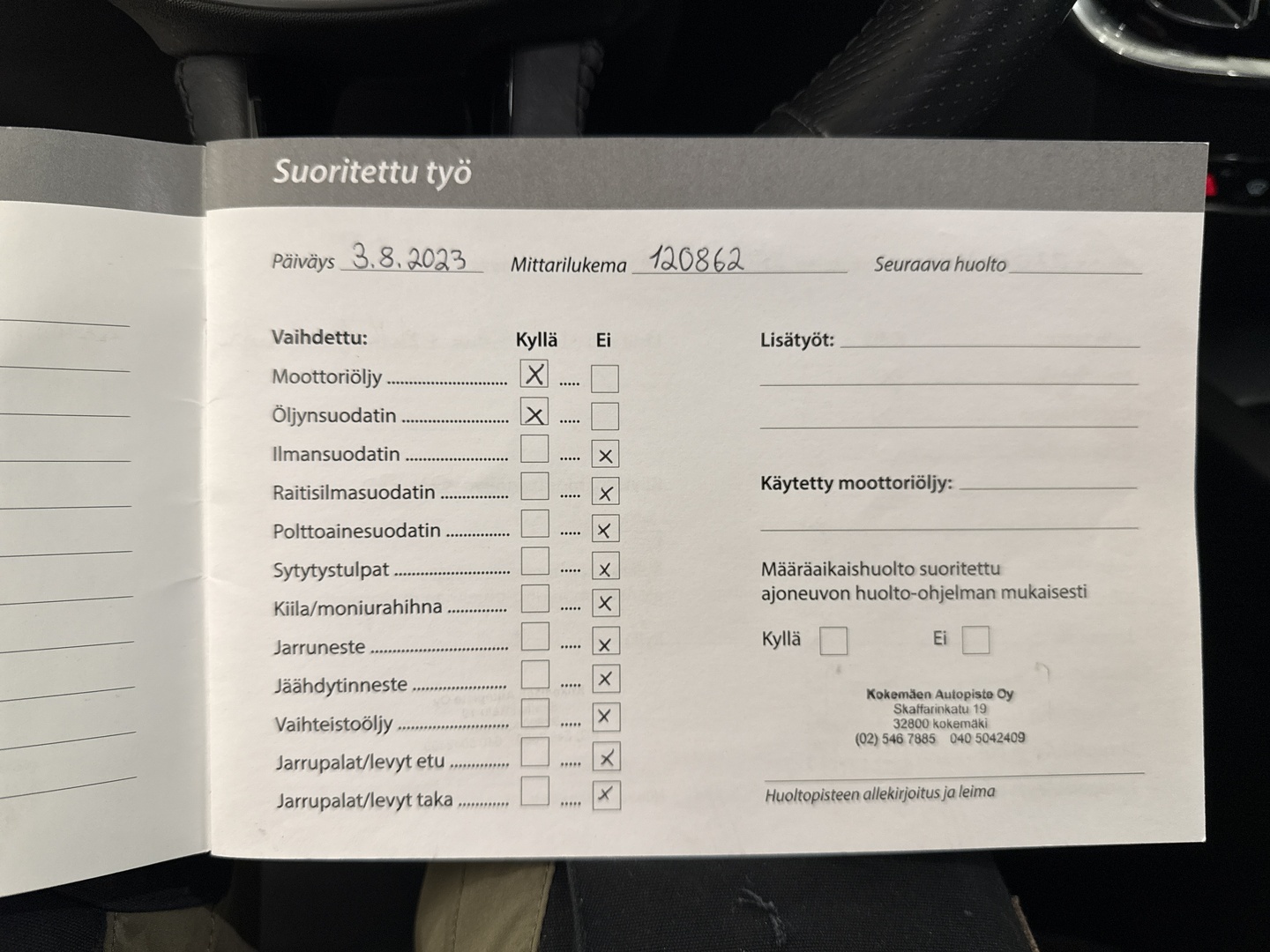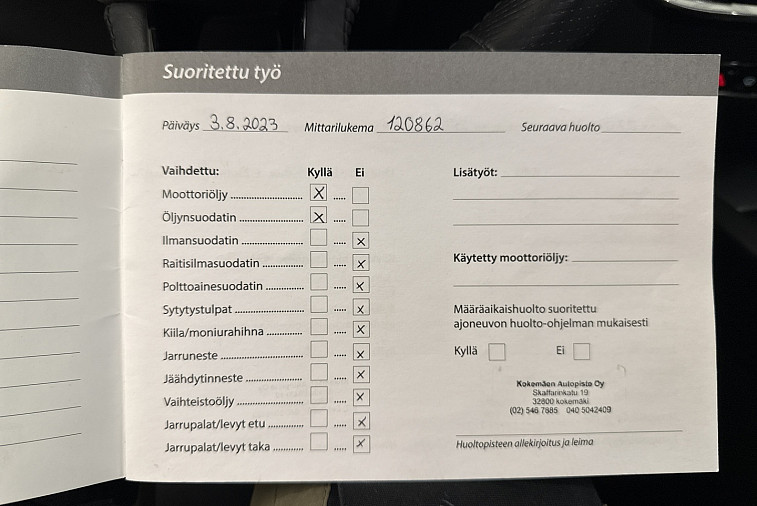 • Huoltokirja paperinen