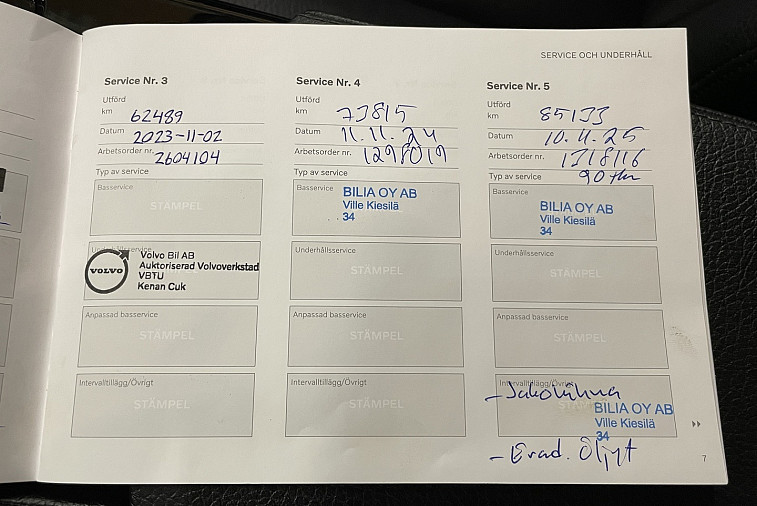 - Viimeisin huolto tehty 85 133 km kohdalla, 11 / 2025