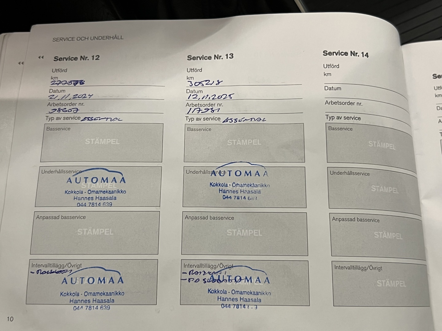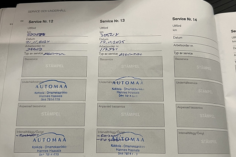 - Viimeisin huolto tehty 305 218km kohdalla, 11 / 2025
