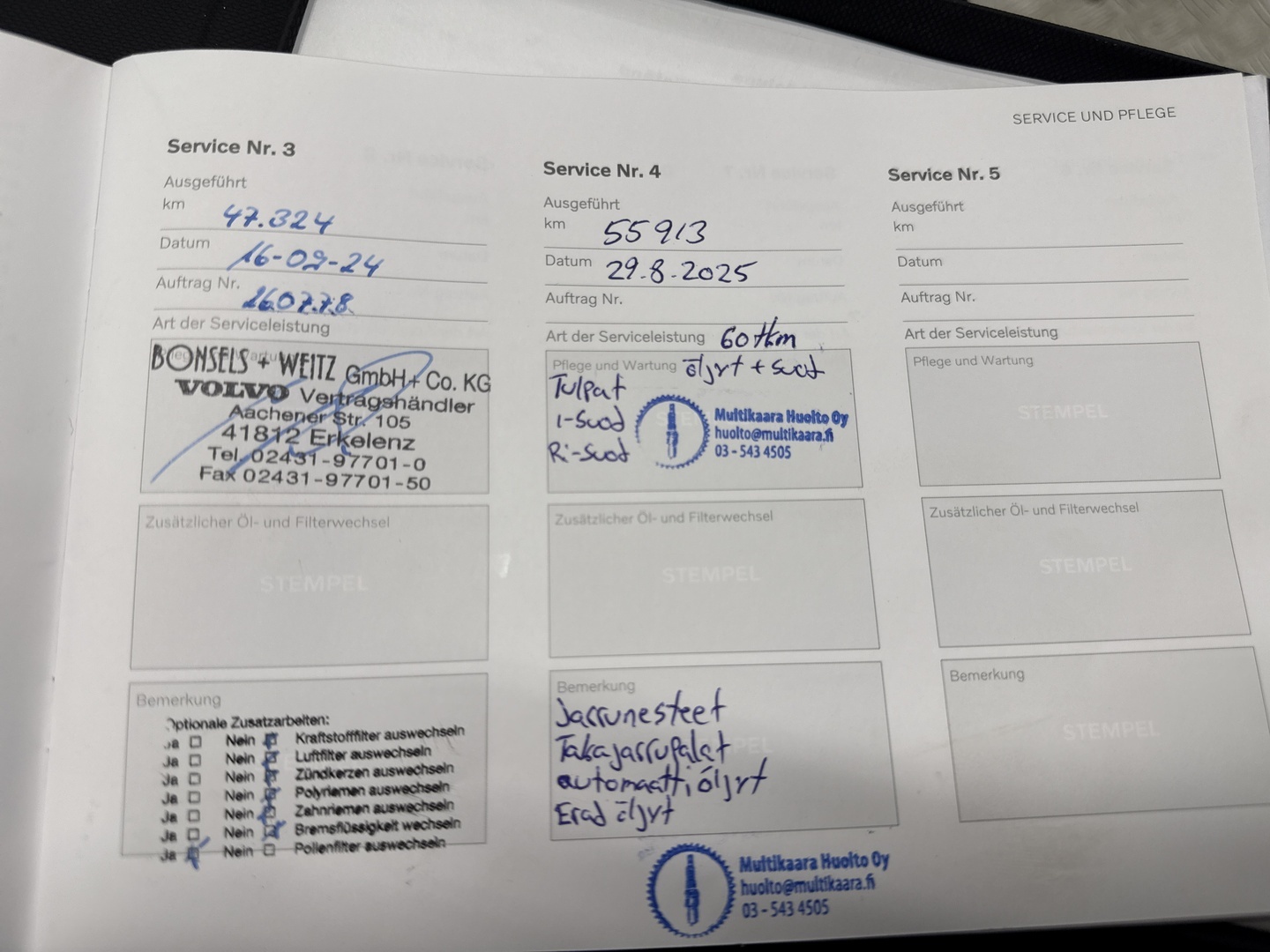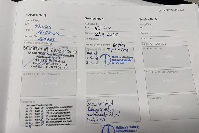 - Viimeisin huolto tehty 55913 km kohdalla, 08 / 2025