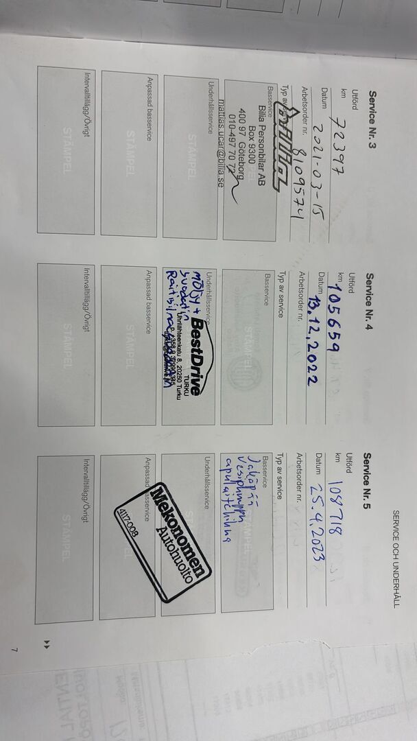 • Viimeisin huolto tehty 157461km kohdalla, 01 / 2026
